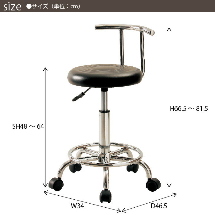| [本体サイズ]幅340×奥行465×高さ665~815mm [座面高]480~640mm |