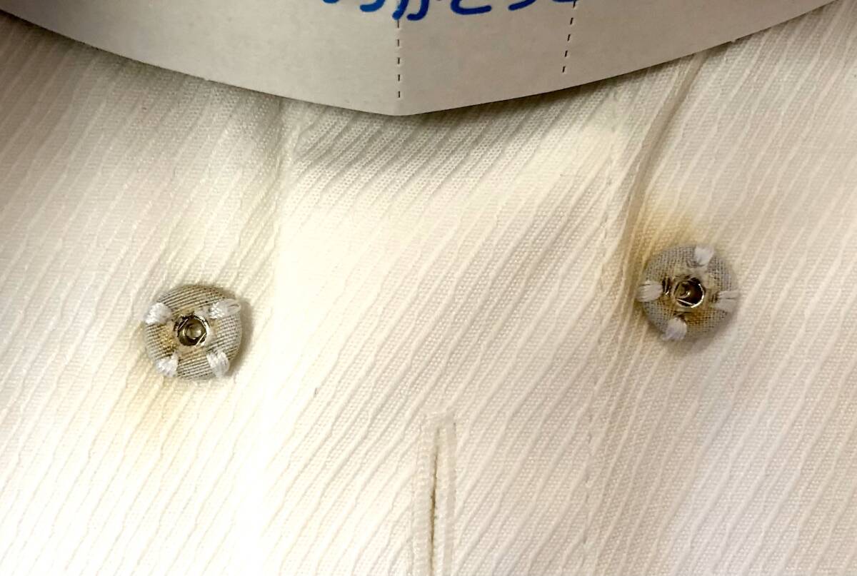 ・首元のボタンを止める部分(7枚目の写真を参照)と、内側のタグの近くの部分(8枚目の写真を参照)