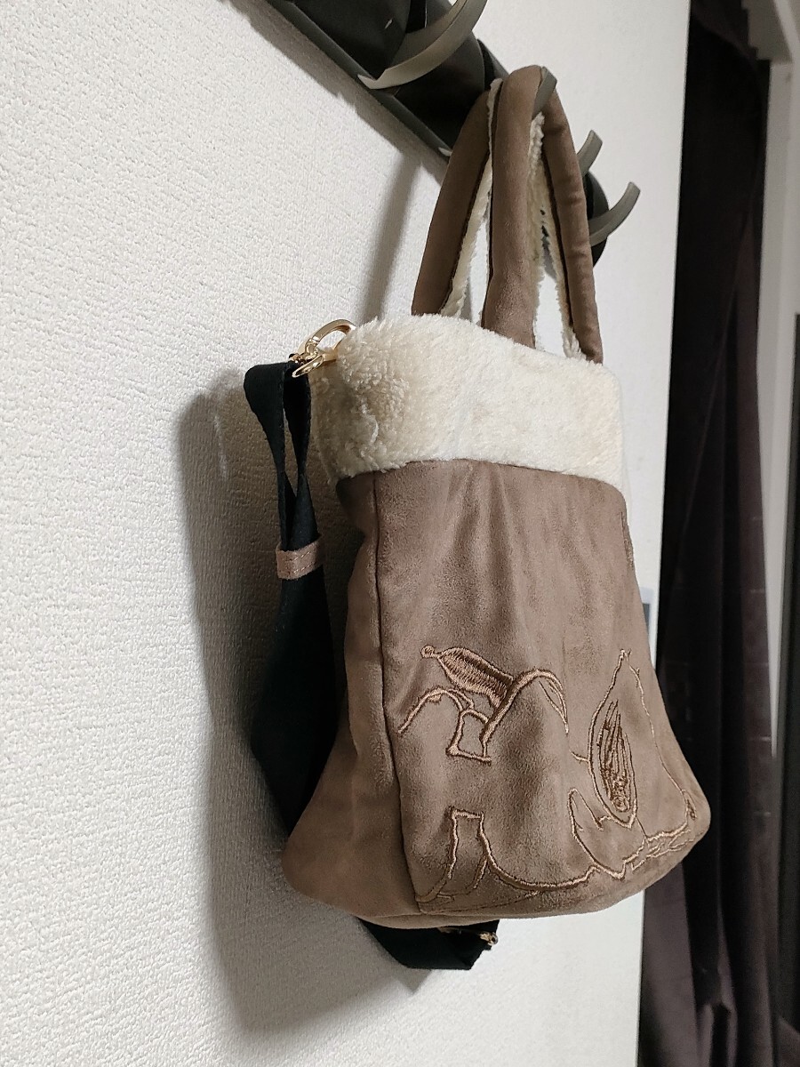 フェイクスエード×ボアにスヌーピーの刺繍が可愛らしい商品です♪