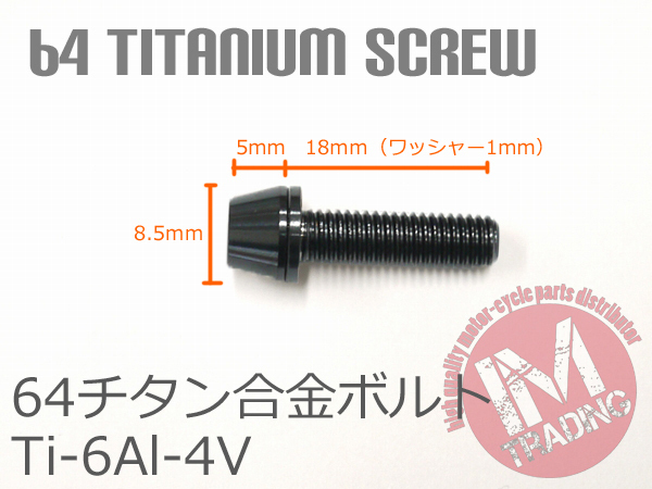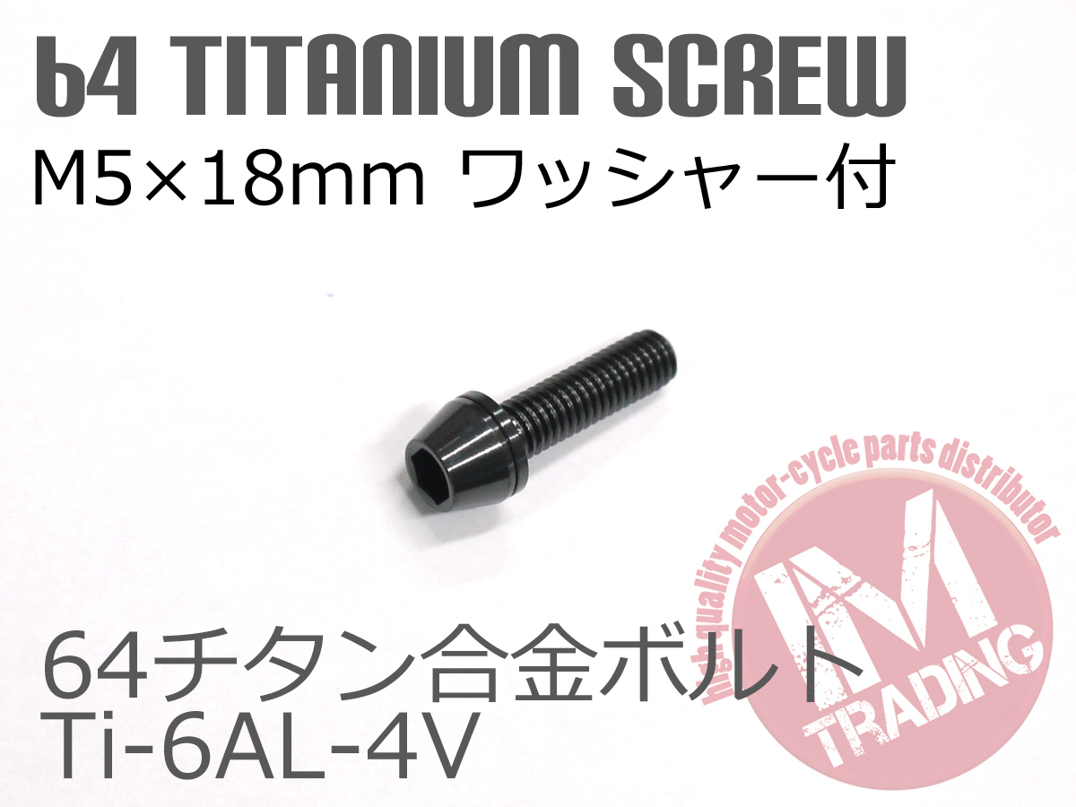 64チタン合金ボルト M5×18mm P0.8 6本セット ワッシャー付き テーパーキャップ ゆうパケット対応 ブラック 黒 Ti-6Al-4V☆