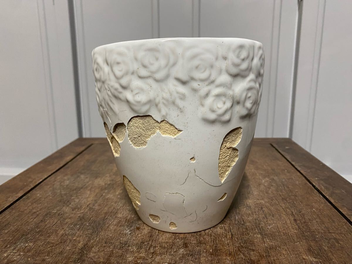 表面がはげている箇所が複数あり欠け傷やひび割れ傷もあります。屋外で保管していたので水あかや土汚れが多少あります。詳しくは画像をご確認ください。