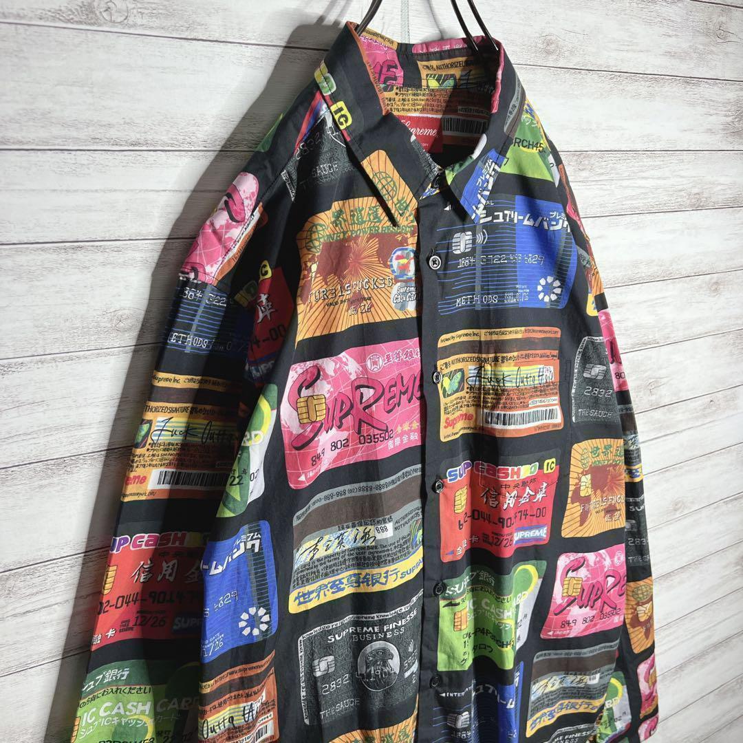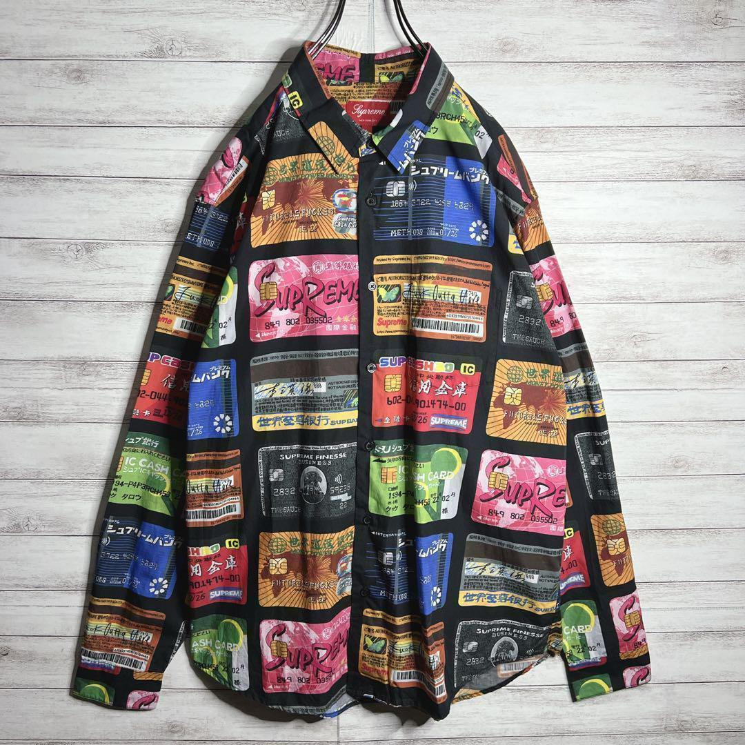 【入手困難!!】シュプリーム Credit Cards Shirt プリント 長袖シャツ ゆるだぼ 重ね着 希少 supreme パーカー スウェット クレジットカードシャツ