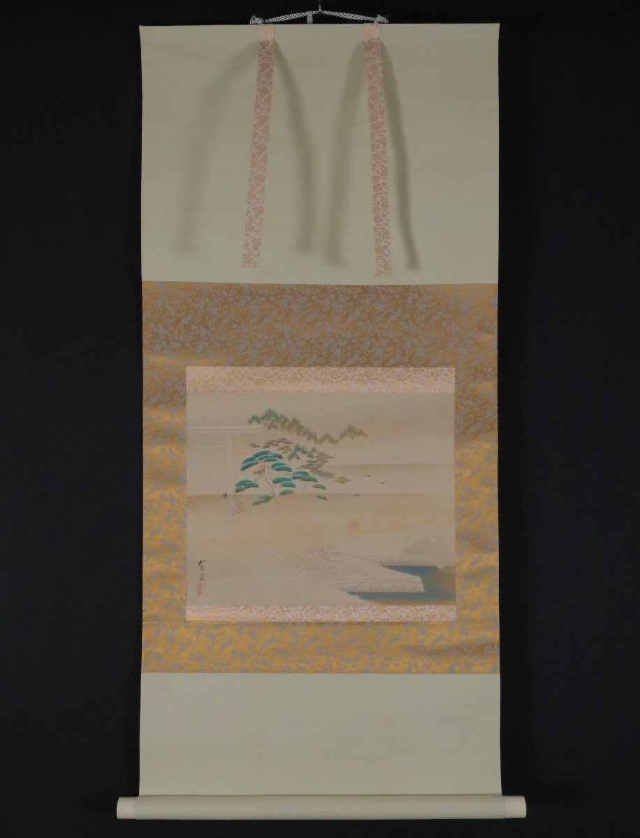 【模写】吉】11933 服部有恒 鳥居図 松岡映丘師事 愛知県 名古屋市の人 茶掛け 茶道具 神社 神道 掛軸 掛け軸 骨董品