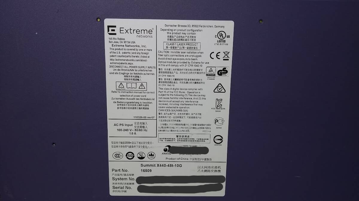 | ご覧いただきありがとうございます.。 自己紹介、商品説明、注意事項をお読みの上ご落札ください。 ●Extreme Networks Summit X440-48t-10G スイッチ switch (中古品) 動作確認済みです。 簡易清掃は行っておりますが、中古品につき多少の使用感や傷などあります。 使用方法などのサポートはできかねますのでご了承ください。 付属品は写真にあるものがすべてです。ご確認の上ご入札ください。 商品に不具合などがあった際は迅速に対応させていただきますので、お手数ですが取引メッセージよりご連絡ください。 対応につきましては、下記の注意事項も併せてご参照ください。 | |||