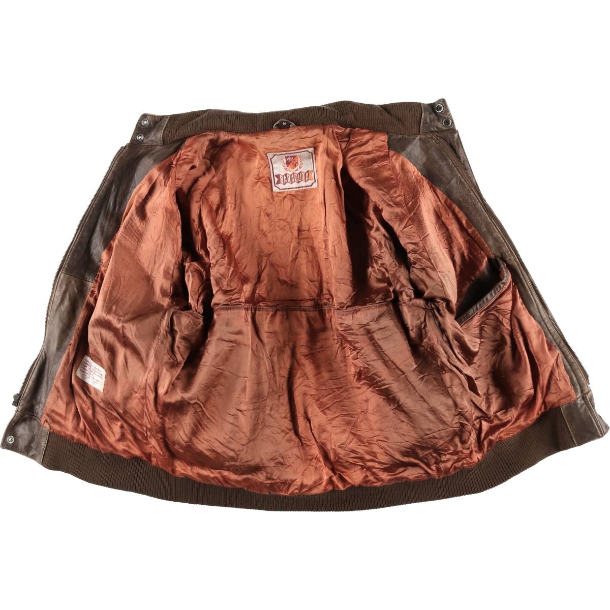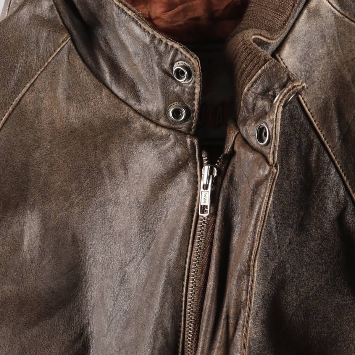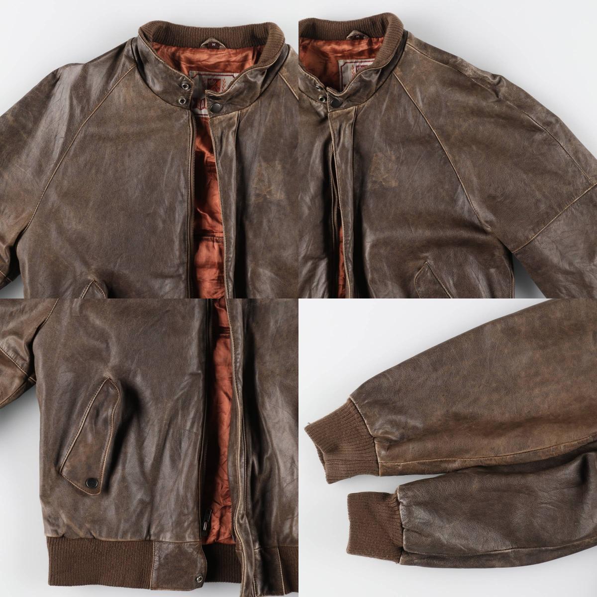 | 表記サイズ: M 着丈: 63cm 身幅: 53cm 裄丈: 90.5cm 袖丈(脇下計測): 51.5cm ![]() | ![]() ランク:C USEDレザーアイテムですので使用感、汚れ、擦れなどございますがレザーアイテムのリアルな表情として捉えていただきご注文御願いします。 【状態追記】 ●全体的に擦れ ●前、左胸に変色 ●前、右袖に汚れ ●後、両袖に汚れ ●内側、全体的に汚れ ●内側、左ポケット内・左脇に汚れ ●内側、右腹部・左袖に糸引き ●内側、左袖にリペア跡 ●内側、右前裾に破れ ●ジップエンドテープ?がれ |