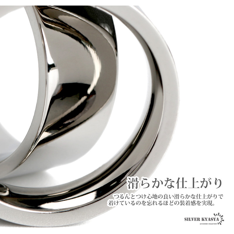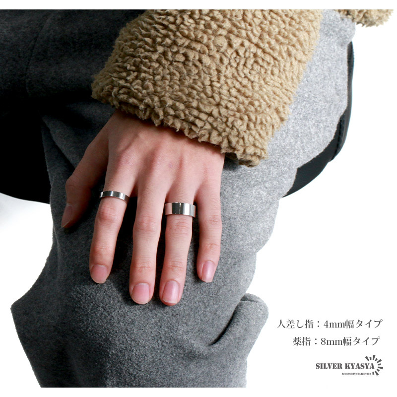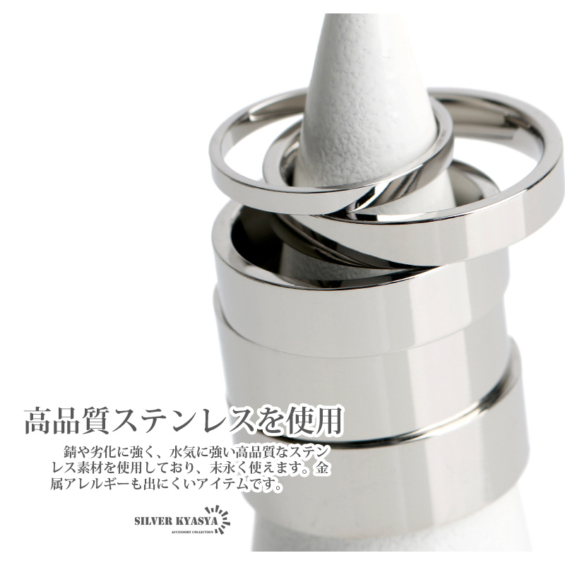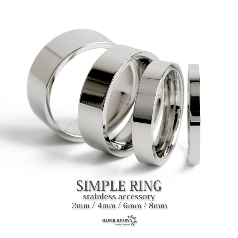 ・ステンレス製特有の輝きを魅せるフラットバンド(平打)リング。装飾のないプレーンなモデルでどんなファッションにも取り入れやすいアイテム。