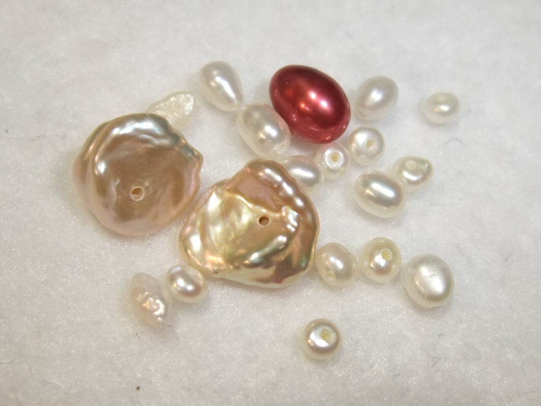 価格高騰中の極上テリツヤのラウンド花弁芥子タイプの淡水真珠でもレアなセンター両穴と、高品質なトリートメントの美しい赤のクレオタイプ、その他人気の小粒のボタンやライス系の小粒等が入りますのでかなりお得と思います