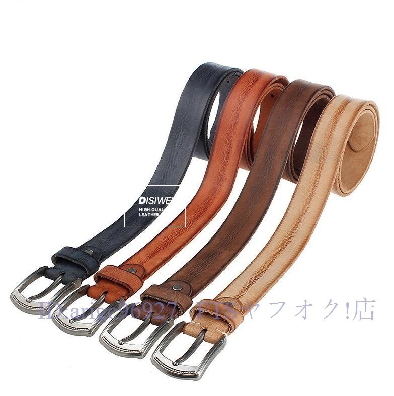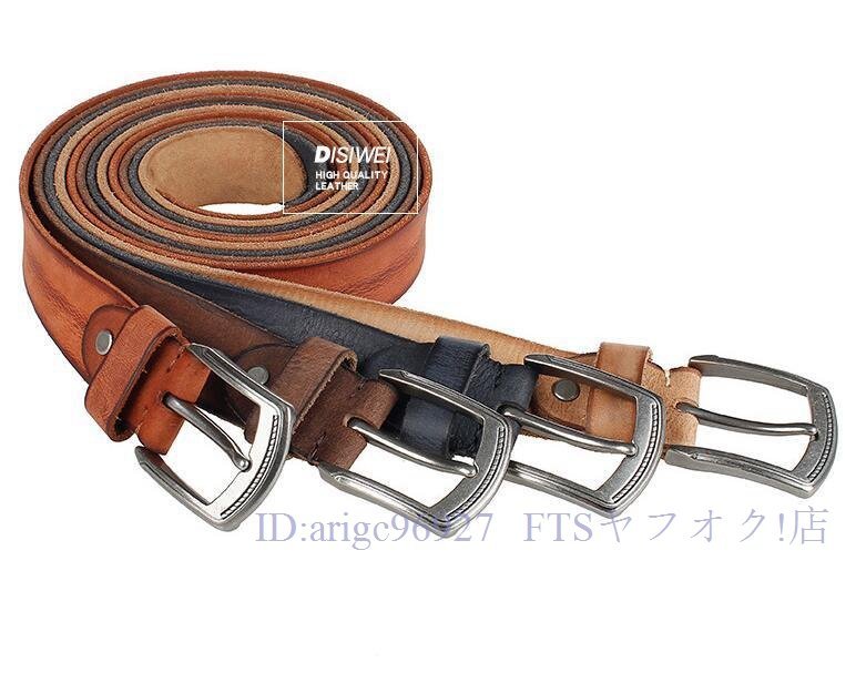 A5944☆新品 レザーベルト◇ 本革 牛革 メンズ ベルト 一枚革 ピンバックル 革ベルト ゴルフウェア ポンチ付き 紳士 アメカジ /茶色