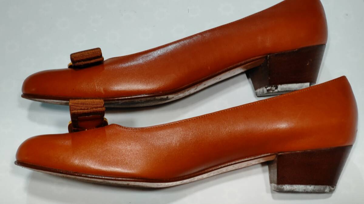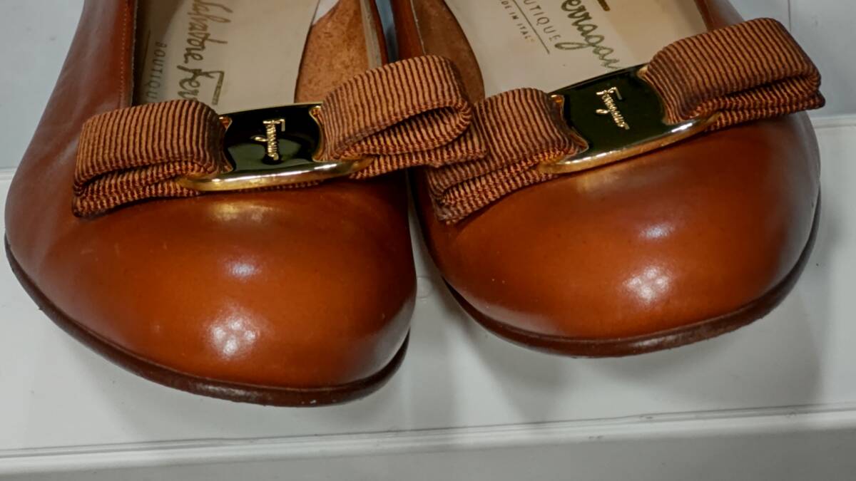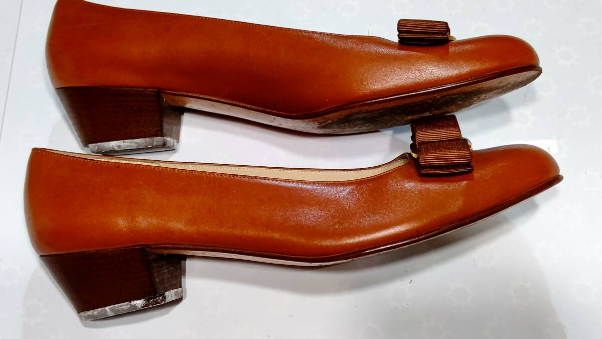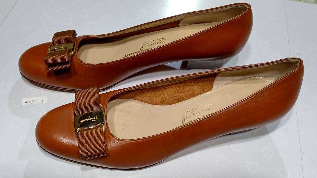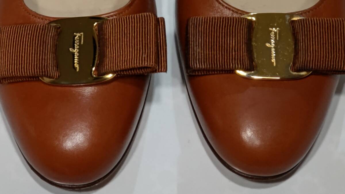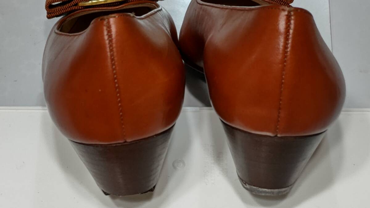 205-1 サルヴァトーレ フェラガモ ヴァラ サイズ 7 パンプス リボン レディース 靴 ブラウン (DB 41202 7 338)