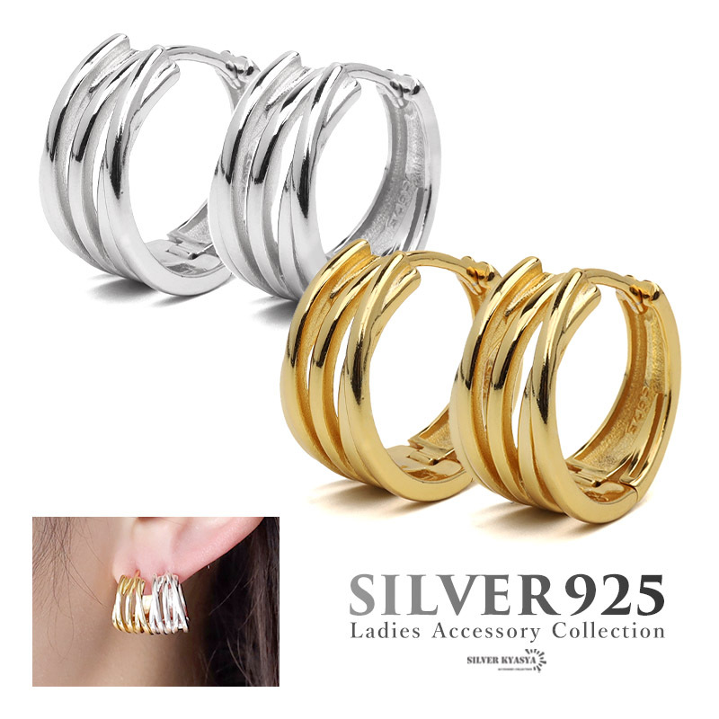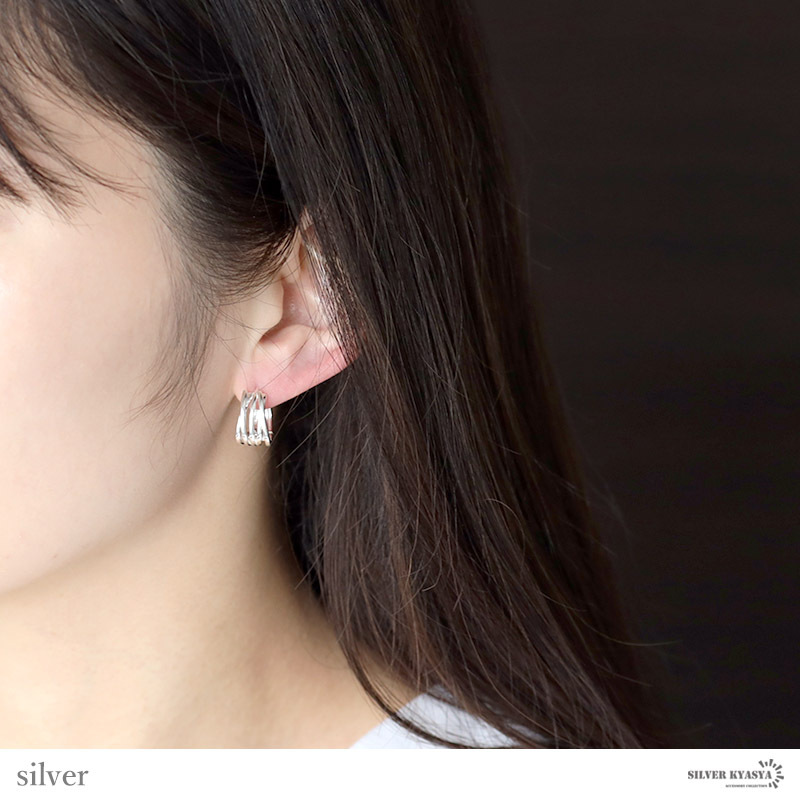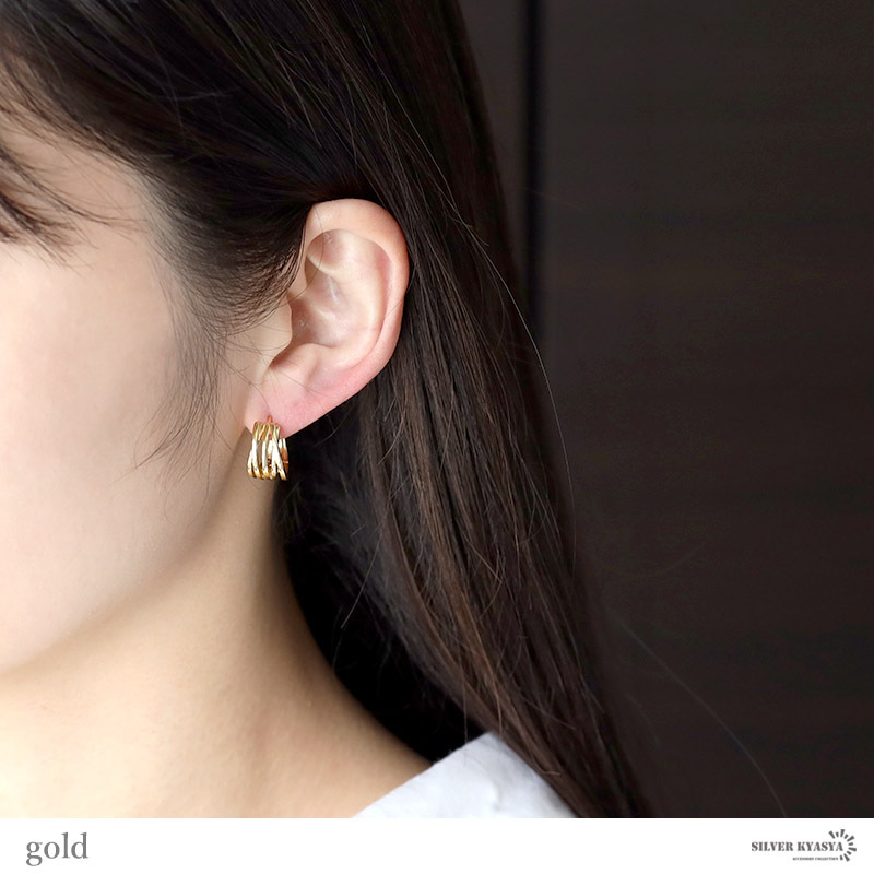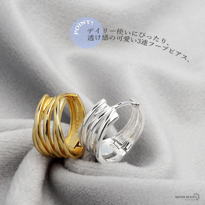 ■透け感の可愛らしい3連フープピアス