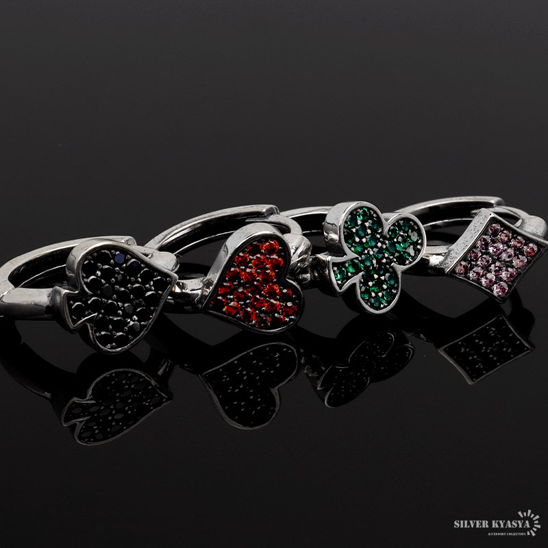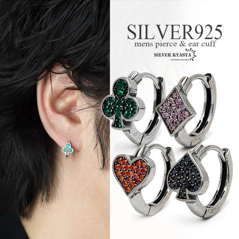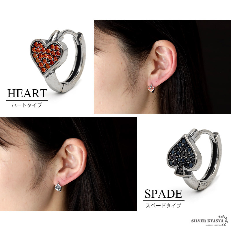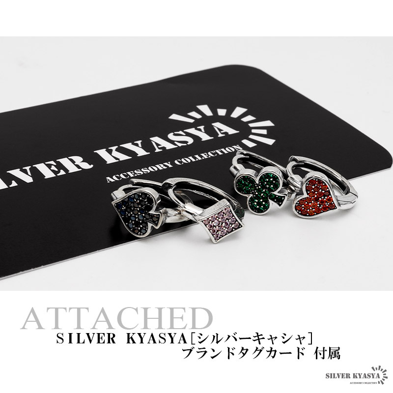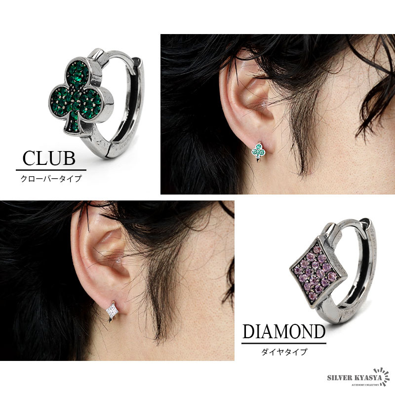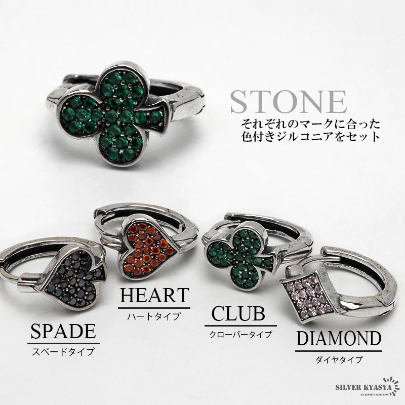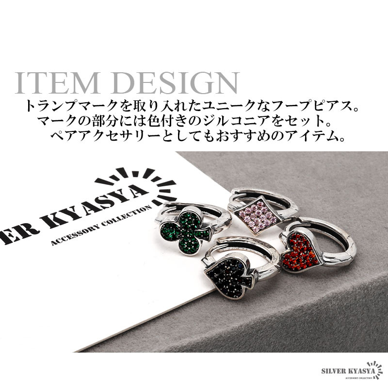 ユニークなトランプマークを取り入れたフープピアス。マークの部分には色付きのジルコニアをセット。ペアアクセサリーとしてもおすすめです。