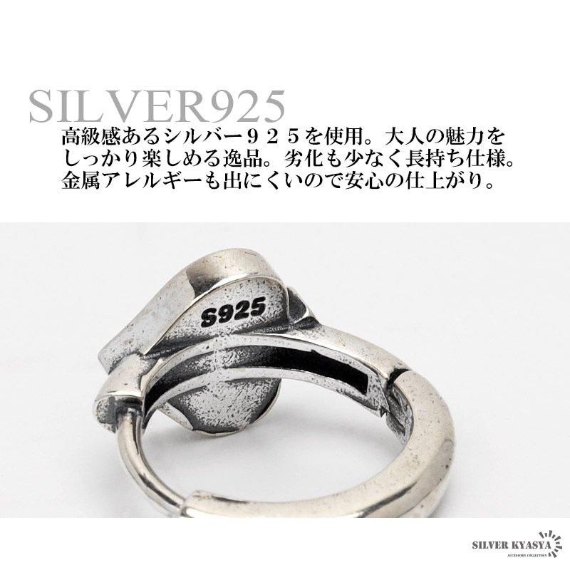 シルバー925は、銀含有率(純度)92.5%を示し、一般的に純銀として扱われています。サビや劣化等がほとんどなく金属アレルギーも出にくとされており、アクセサリーとして重宝される金属です。