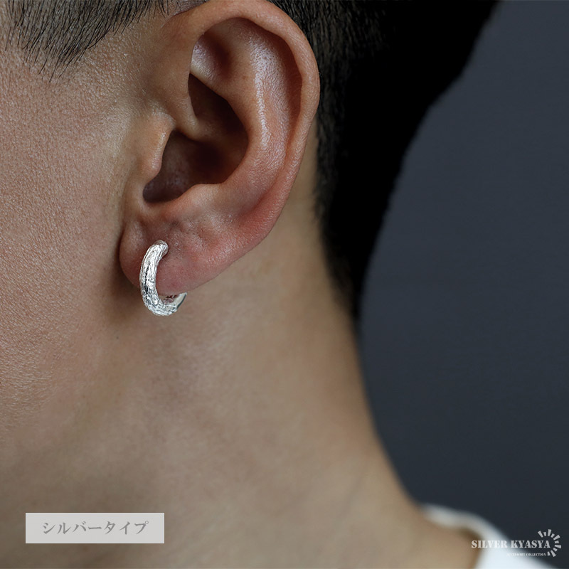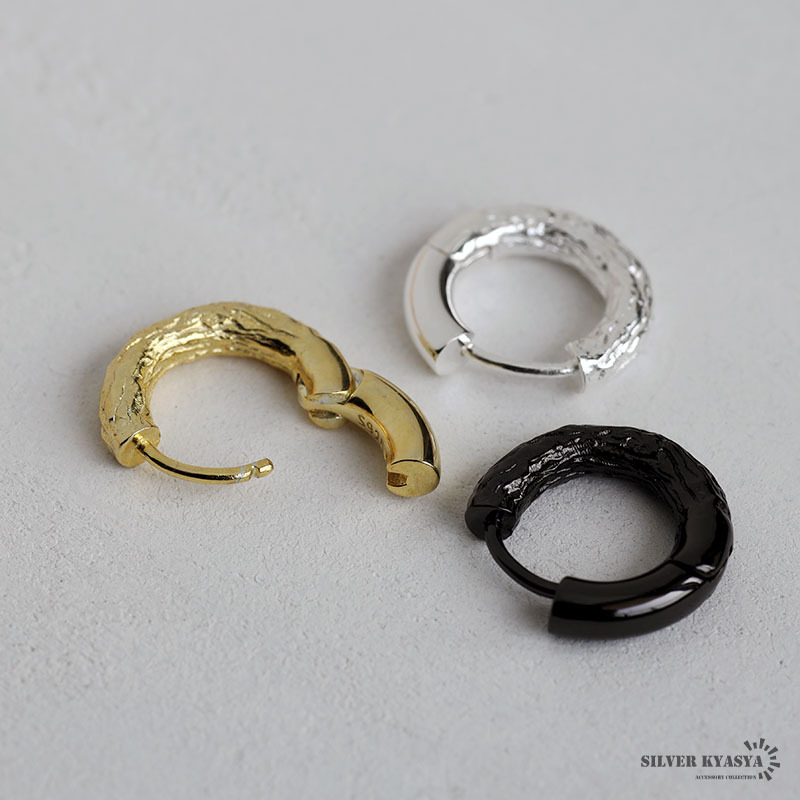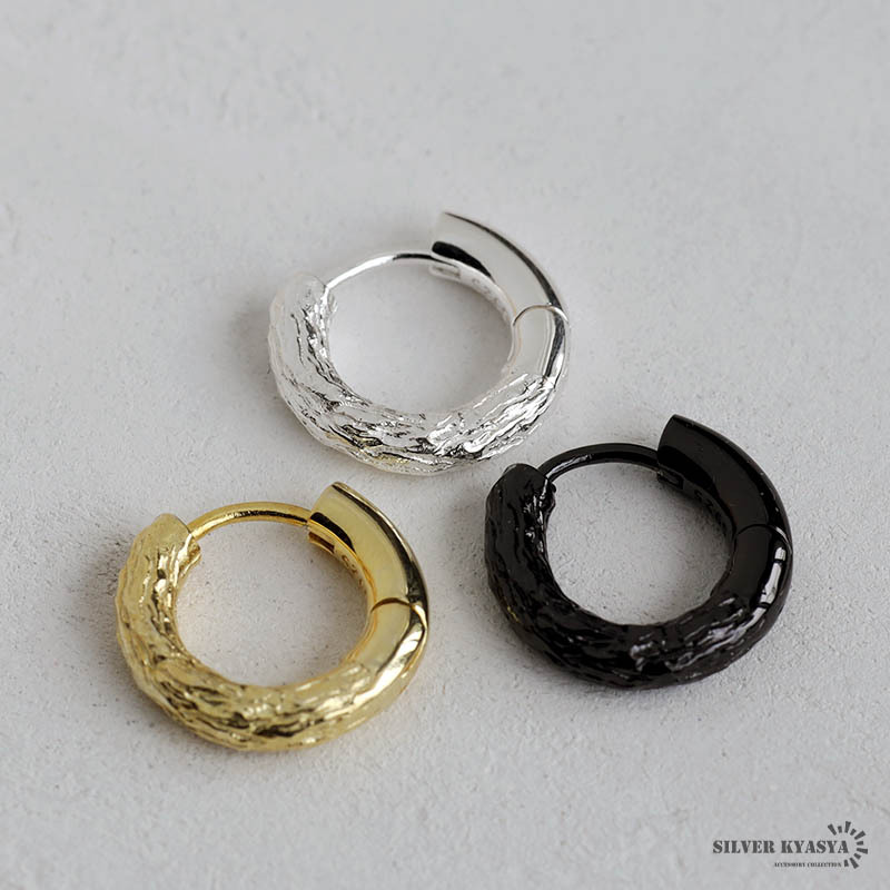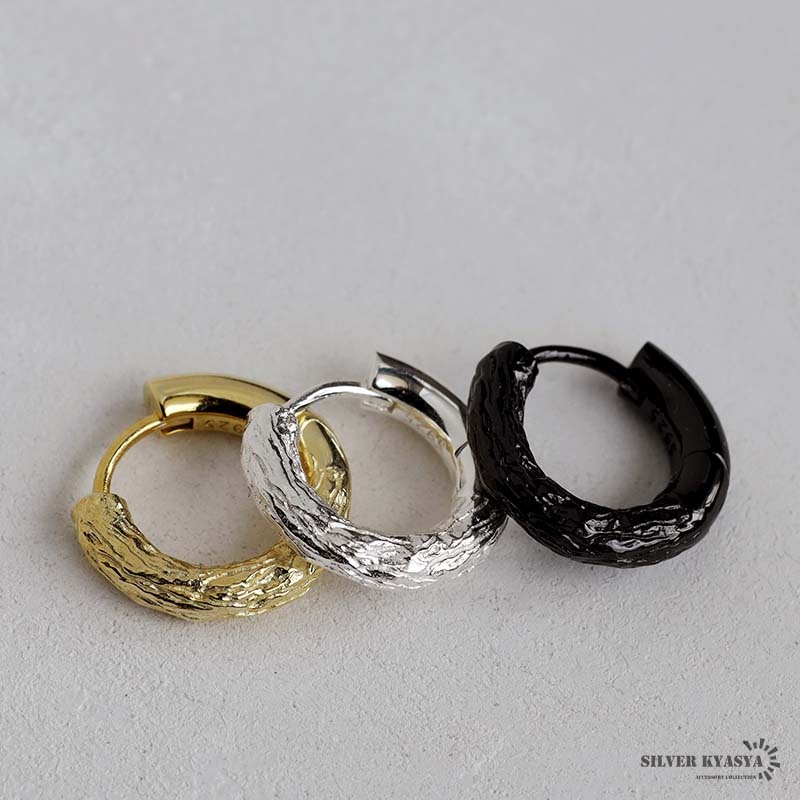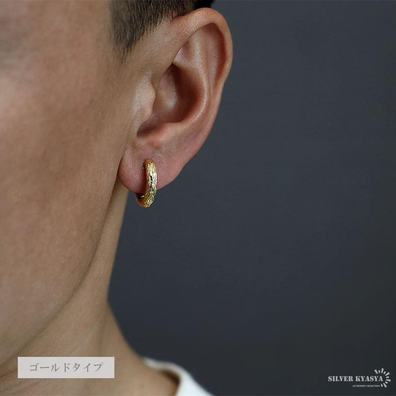 木目風の模様がこなれ感たっぷりのフープピアス。つや消し加工を施しており、優しく上品に輝きます。