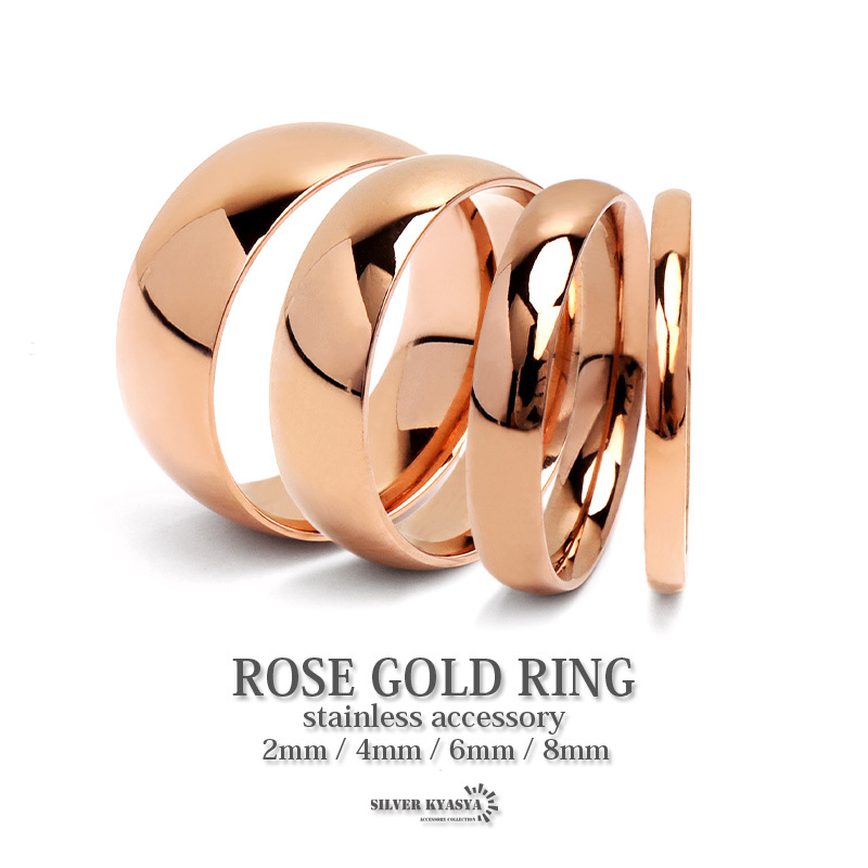 ・装飾のないシンプルな甲丸リングに大人のお洒落を楽しめるローズゴールドカラーが登場。プレーンな見た目で幅広い場面で活躍するアイテムです。ペア使いにもおすすめ。