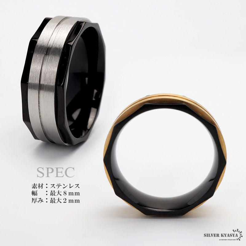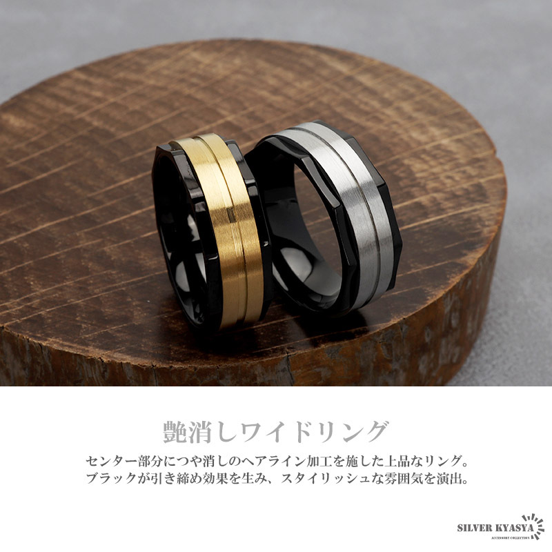 | 商品概要 | ■艶消しワイドリング センター部分につや消しのヘアライン加工を施した上品なリング。ブラックが引き締め効果を生み、スタイリッシュな雰囲気を演出。 ■ステンレス素材を使用 金属部分は頑丈なことで知られるステンレス素材を採用。耐久性はもちろん耐水性も高く水場での着用も可能。金属アレルギーも出にくいとされている金属です。 |