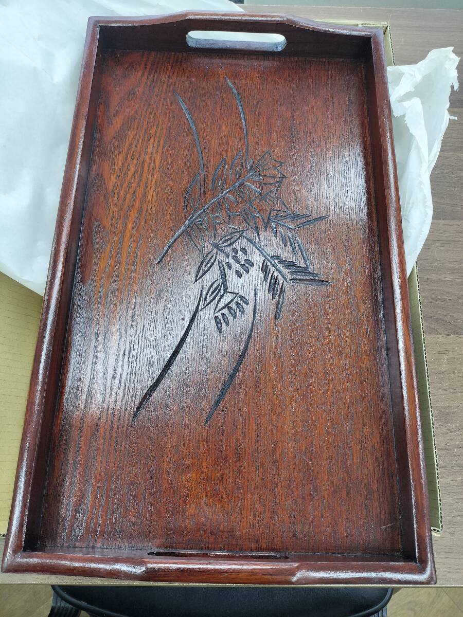 | 未使用 昭和 レトロ お盆 漆器 大きな四角盆 持ち手付き トレー業務用 | |||