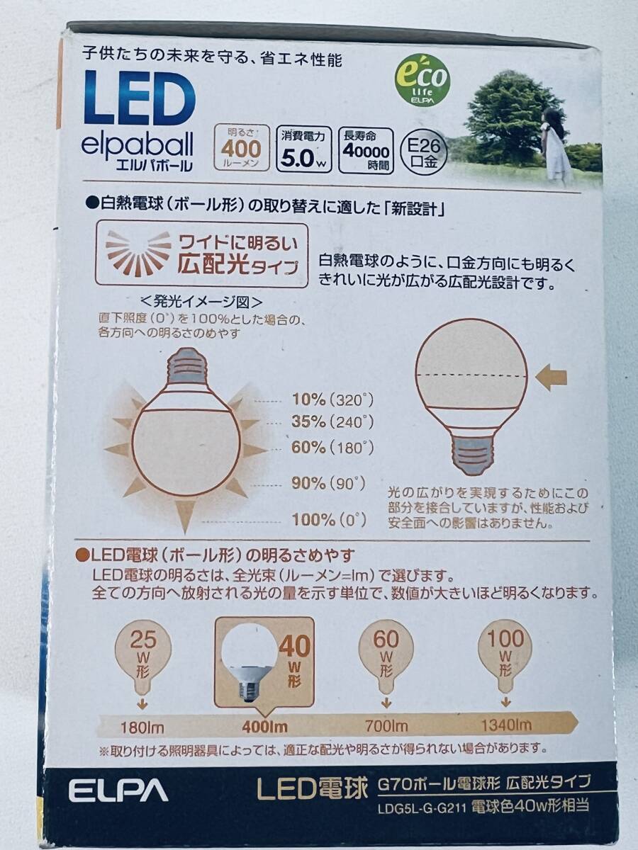 ELPA 【LED電球 G70ボール電球形 40形相当 電球色 E26口金】 400ルーメン 広配光タイプ 40W 5.0W 照明器具 エルパボール