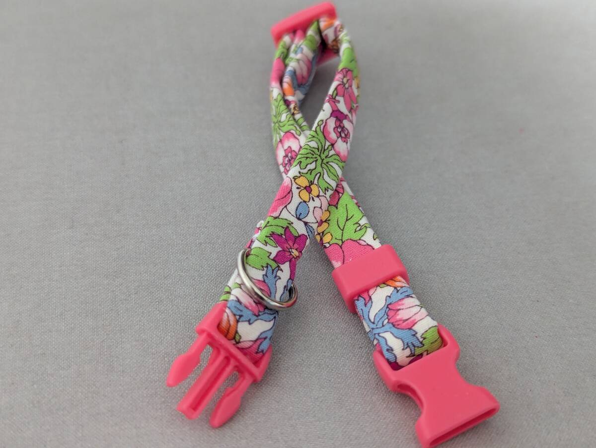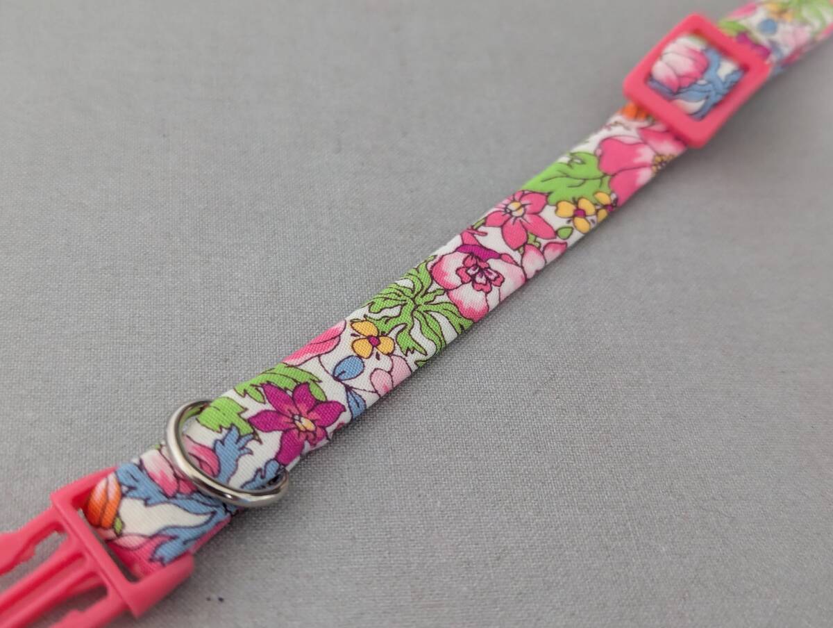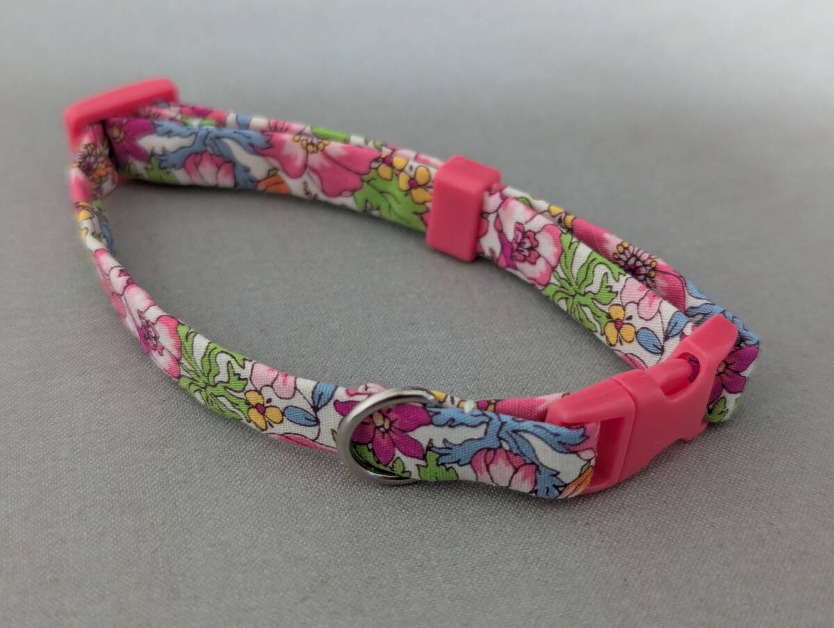 ★手作り京都作家物 猫 首輪 和柄★白地洋花模様★ハンドメイド (セーフティタイプ) 即決700円