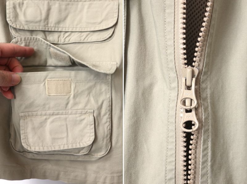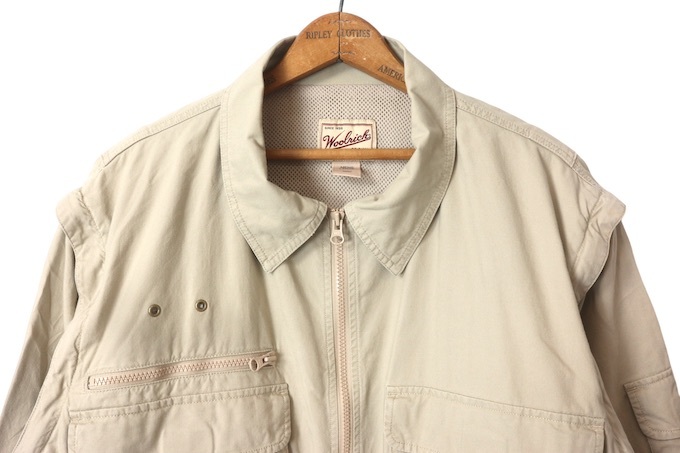 90S『WOOLRICH ウールリッチ』の2WAY フィッシングジャケットです。フロントダブルジップ、ポケットは全てマジックテープ仕様。袖はジッパーで取り外し可能。素材は100%COTTON。