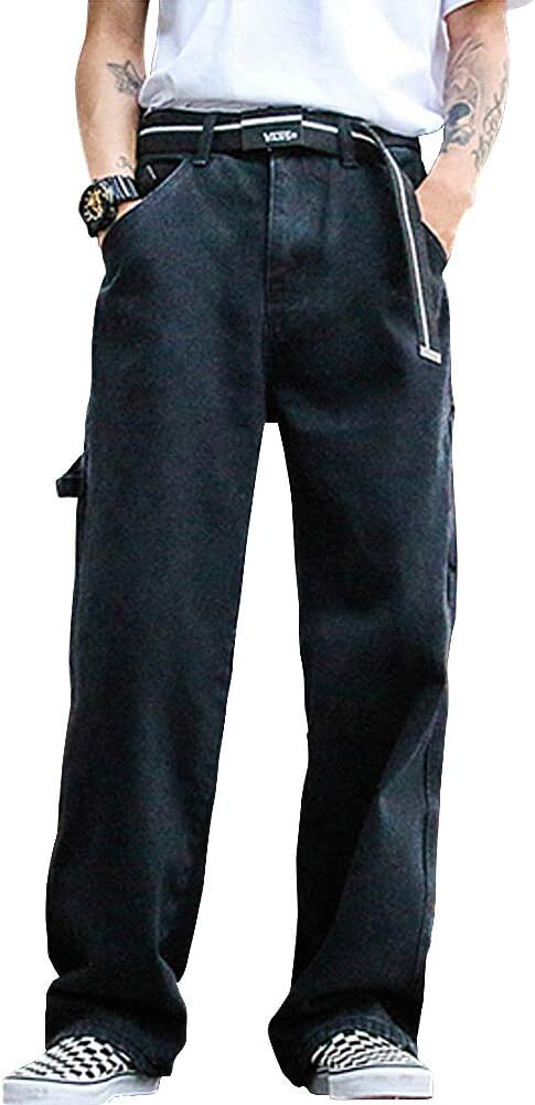 [ベラバント]デニムパンツ メンズ ロングパンツ ジーパン ストレート ズボン ワイドパンツ ゆったり おしゃれ ブラック Mサイズ