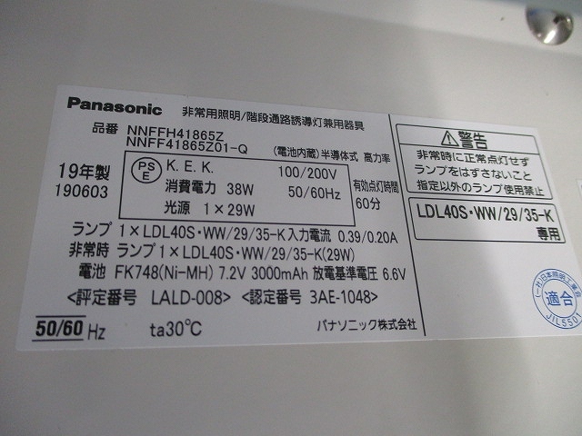 LED非常用照明器具(温白色)(19年製) NNFFH41865Z