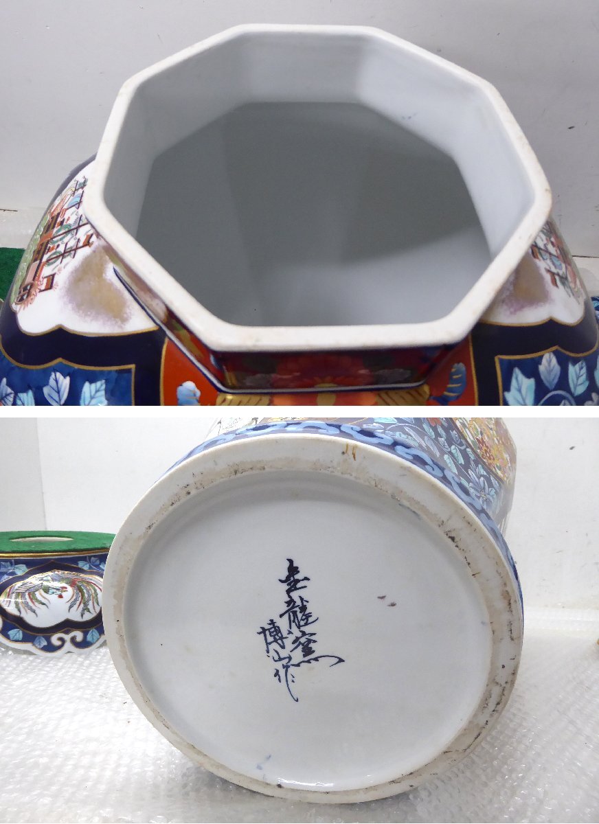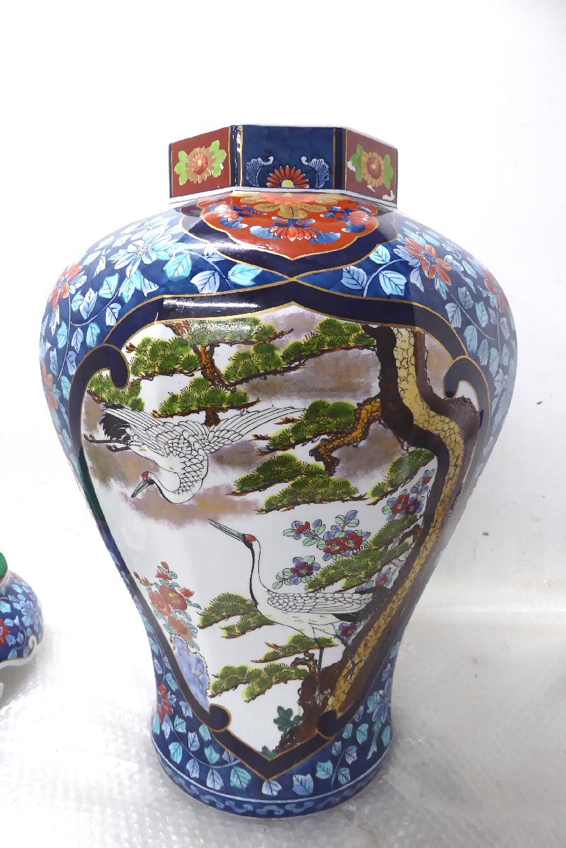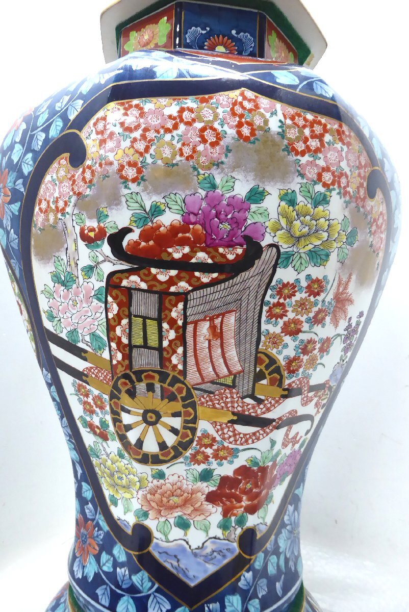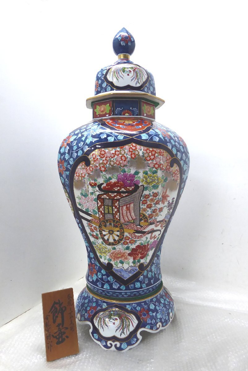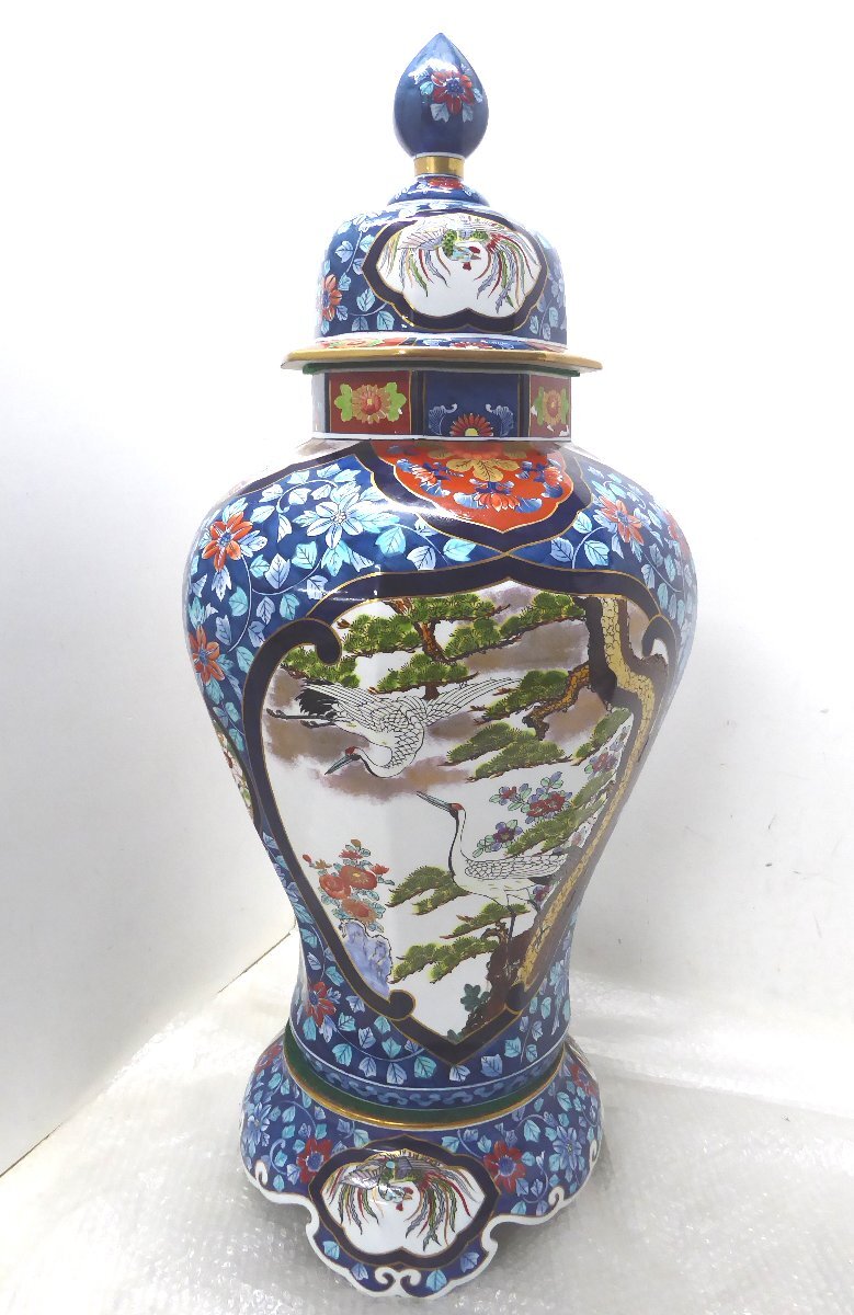 ■◆札幌店舗引取限定~ 伝統工芸美術 有田焼 染錦色絵 飾壷 金龍窯博山作 高さ99cm