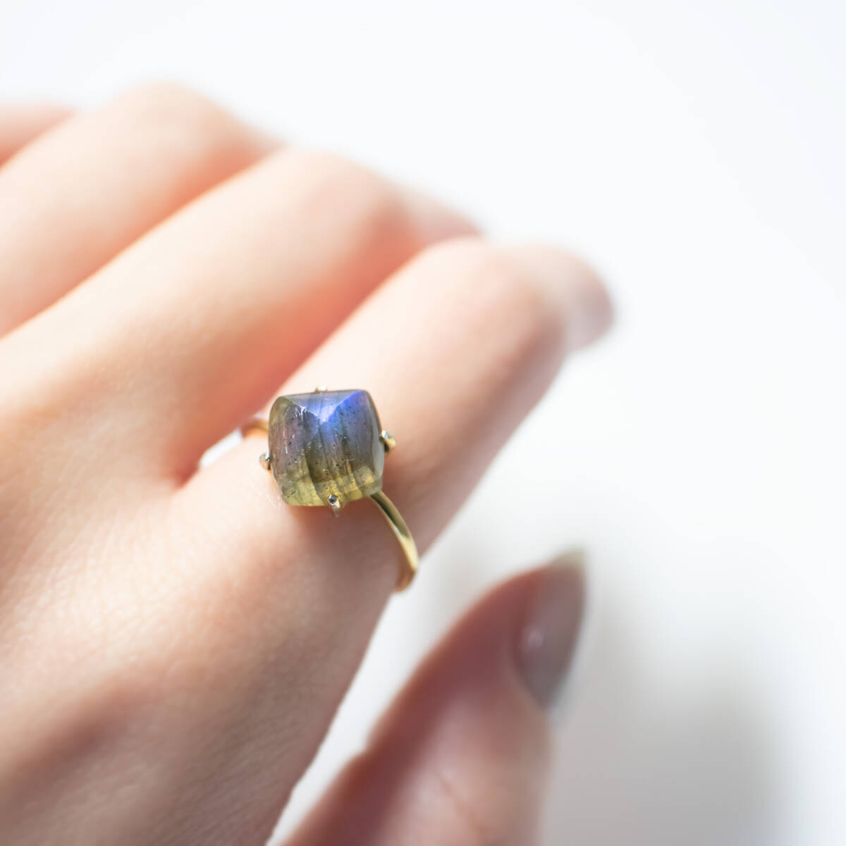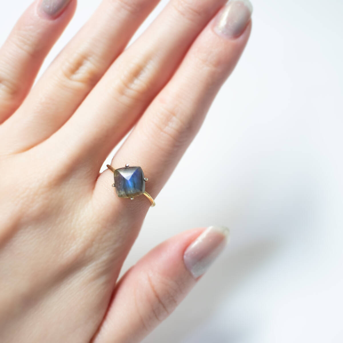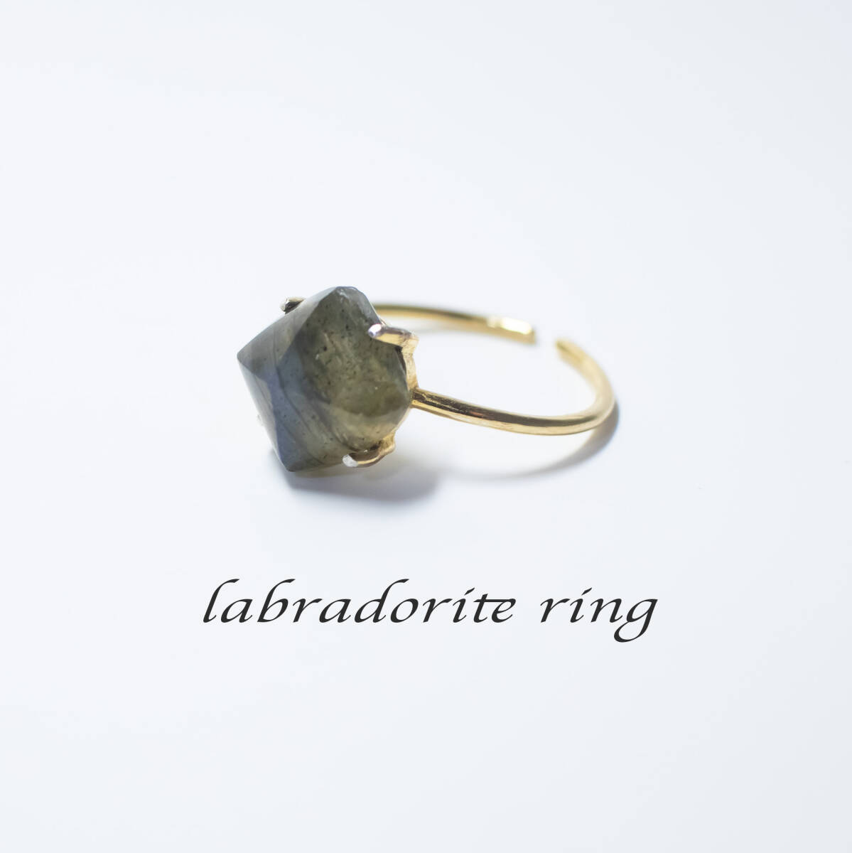 天然石 リング ラブラドライト シュガーローフ◆フリーサイズ◆18KGP 指輪 ゴールド