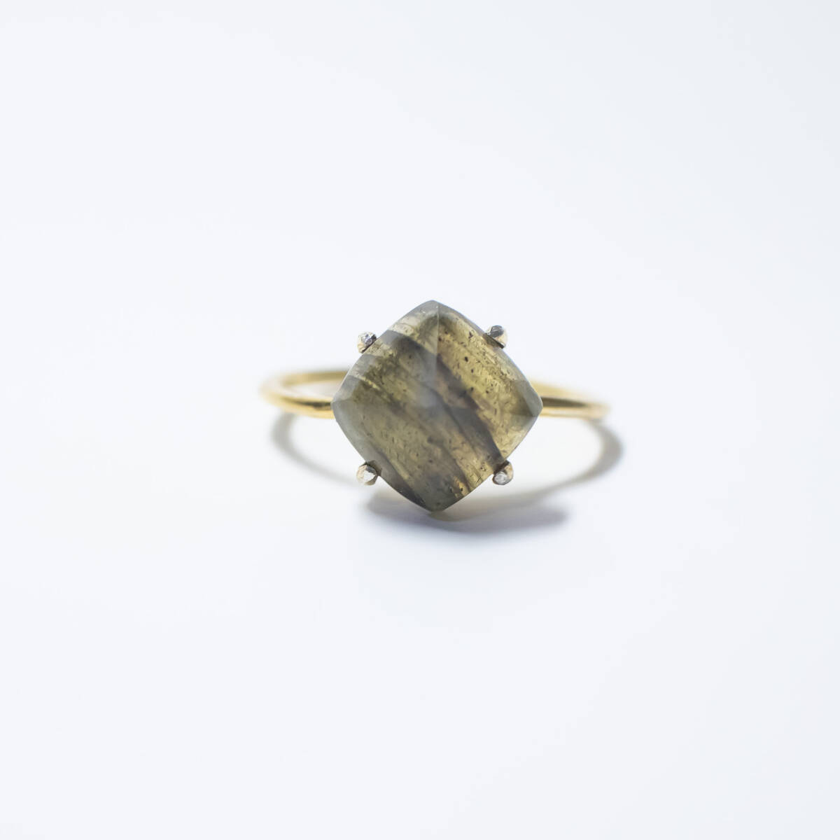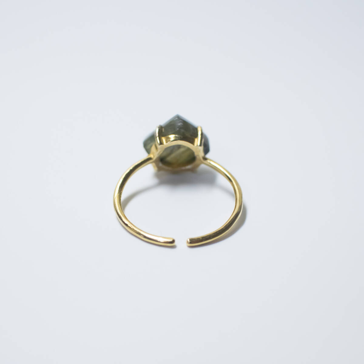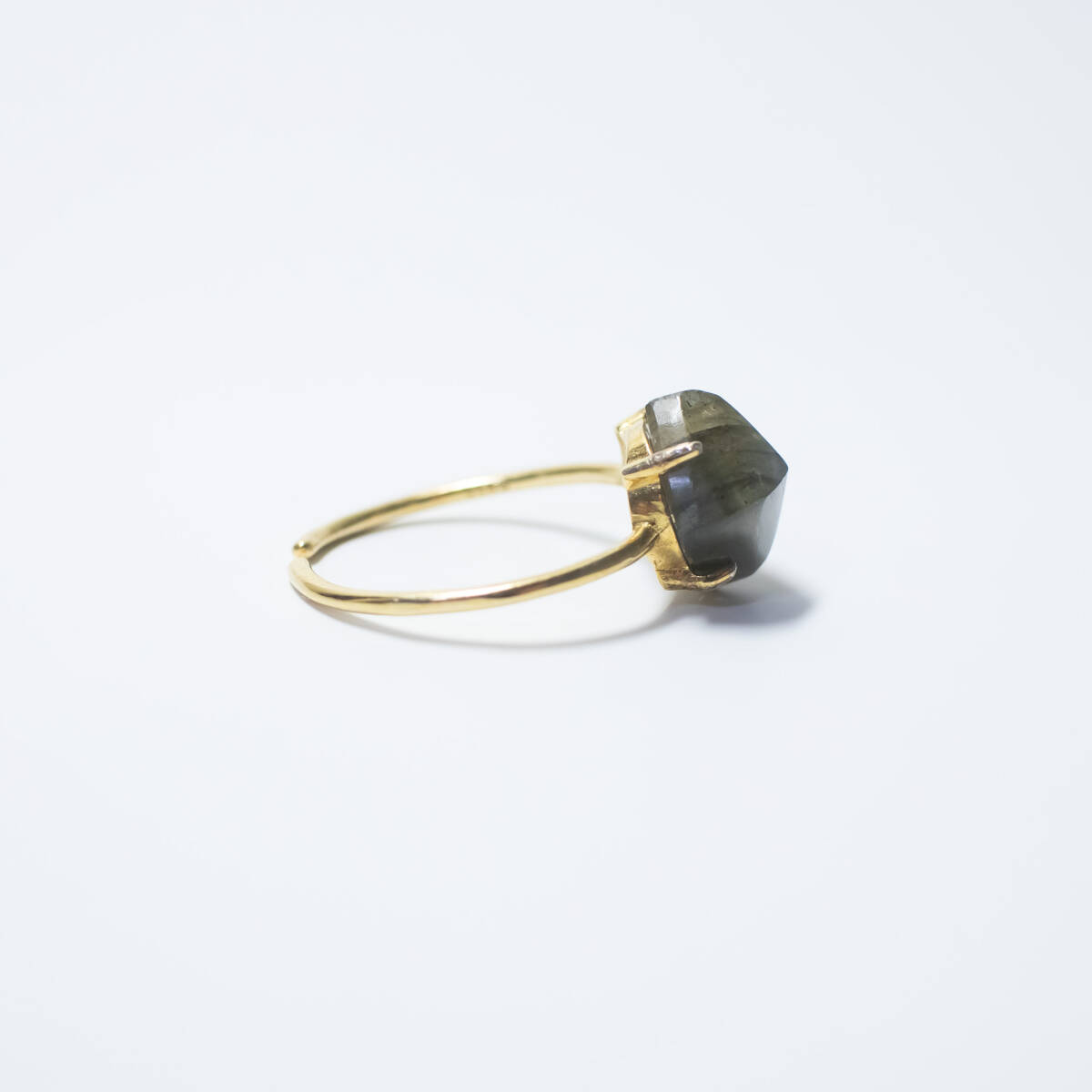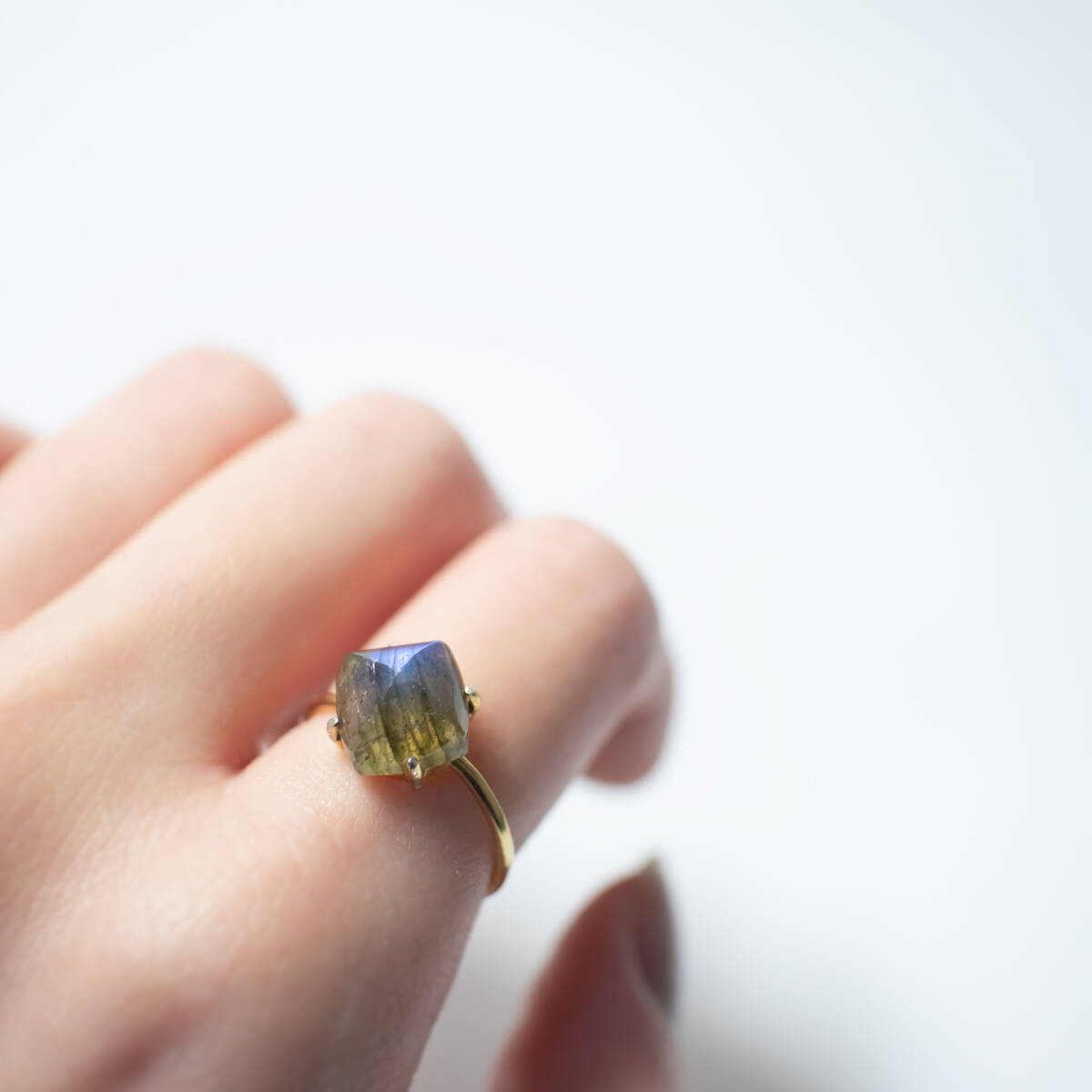 天然石 リング ラブラドライト シュガーローフ◆フリーサイズ◆18KGP 指輪 ゴールド