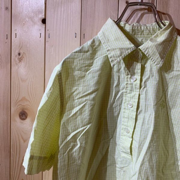[KWT3560] BROOKS BROTHERS 半袖シャツ メンズ リーフグリーンチェック柄 M ポス