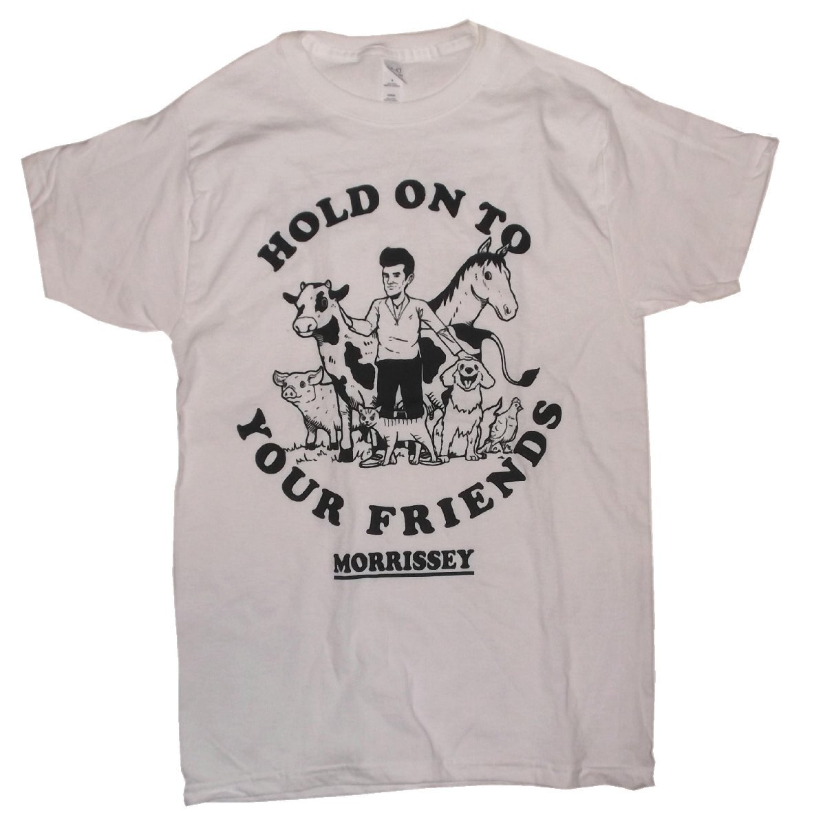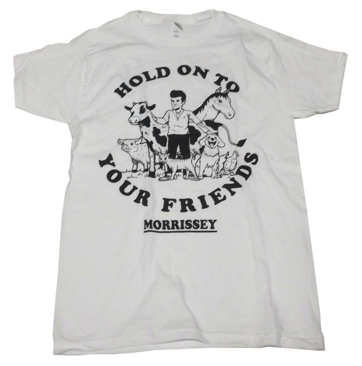 | MORRISSEY : HOLD ON TO YOUR FRIENDS TEE 正規品 1980年代イギリスの最も重要なロックバンドのひとつと評された、 「ザ・スミス」のフロントマン「モリッシー」のTシャツ「HOLD ON TO YOUR FRIENDS」です。 ポスト・パンク時代のカリスマ的存在であったザ・スミスが1987年に解散。その後、ソロ1作目『Viva Hate』以降、現在に至るまで精力的な音楽活動を続け、世界中に熱狂的なファンを獲得しているモリッシー! 1994年のナンバー1アルバム「Vauxhall and I」からの2枚目のシングル「HOLD ON TO YOUR FRIENDS」をフィーチャリング!! ベジタリアン、社会問題や政治問題に対する論客としても知られ、動物保護の団体への支援を継続するモリッシーの、メッセージがこめられたデザインです。 新品・正規品 Lサイズ 180cm前後の方に良いかと思われます。肩幅54cm, 身幅56cm, 着丈77cm メール便送料¥250(代引き不可・紛失補償なし) ACE CAFE LONDON、LUCKY13、THRASHER、Sailor Jerry等~アメキャラ・企業ロゴ等ライセンスTシャツ、RATFINK関連品、バンドTシャツ、等取り扱っております。 ** 他にも色々出品中です。 CWBT cwktw cwlpm IWTS | |||||||