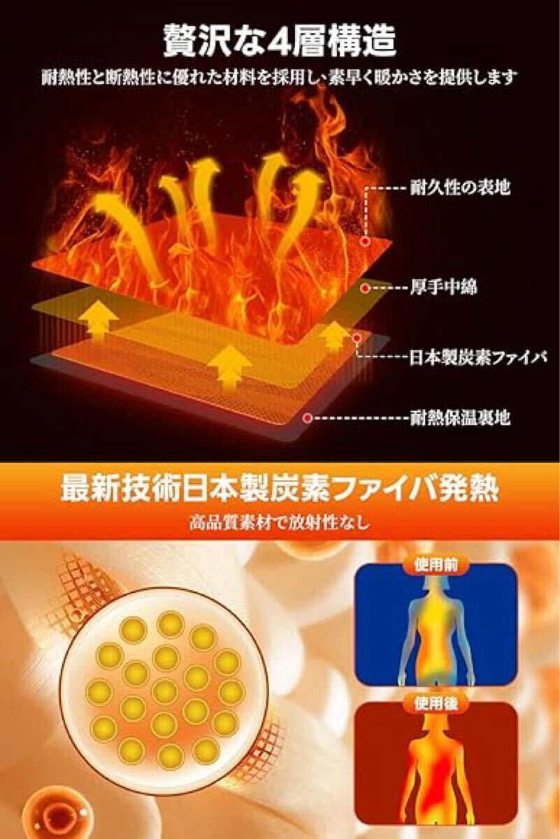 【すぐ発熱、すぐ快適】日本製炭素繊維(カーボン)ヒーターを採用、繊維のようなしなやかさと強靭さを持ち、伝導熱率が高い、スイッチオンから5秒ほどで速やかに発熱!電熱ベストの表層はポリエステルの素材、電熱ベストとの相性抜群の性能があります。さらに耐久性にも優れおり、摩擦や摩耗による生地の劣化も少ないので、ハードな作業環境でもご使用いただく事ができるタフさを兼ね添えてます。