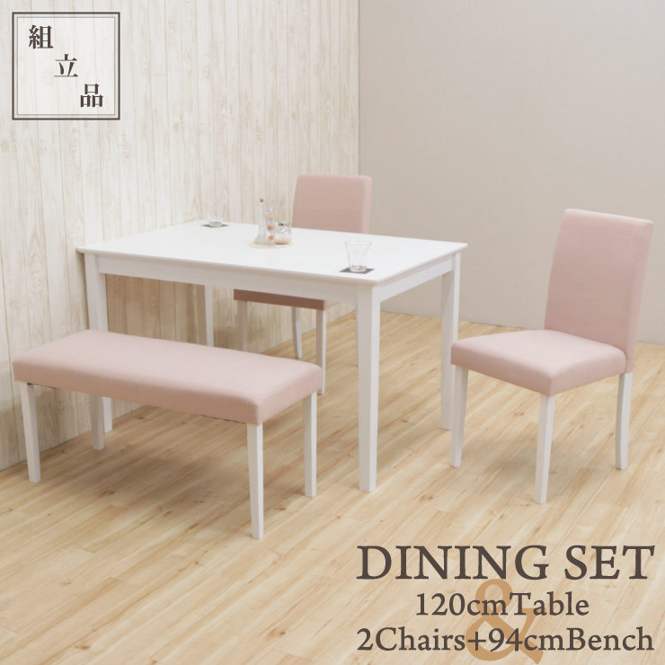 ベンチ付き ダイニングテーブルセット 4点 幅120cm ac120-4-rusi342pi ホワイト 白 ピンク 4人用 カフェ風 食卓 リビング 9s-3k hg