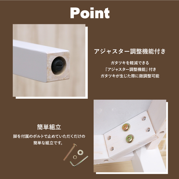 商品の特性上、組立方や床の材質、設置場所にによっては多少ガタ付く場合がございます。