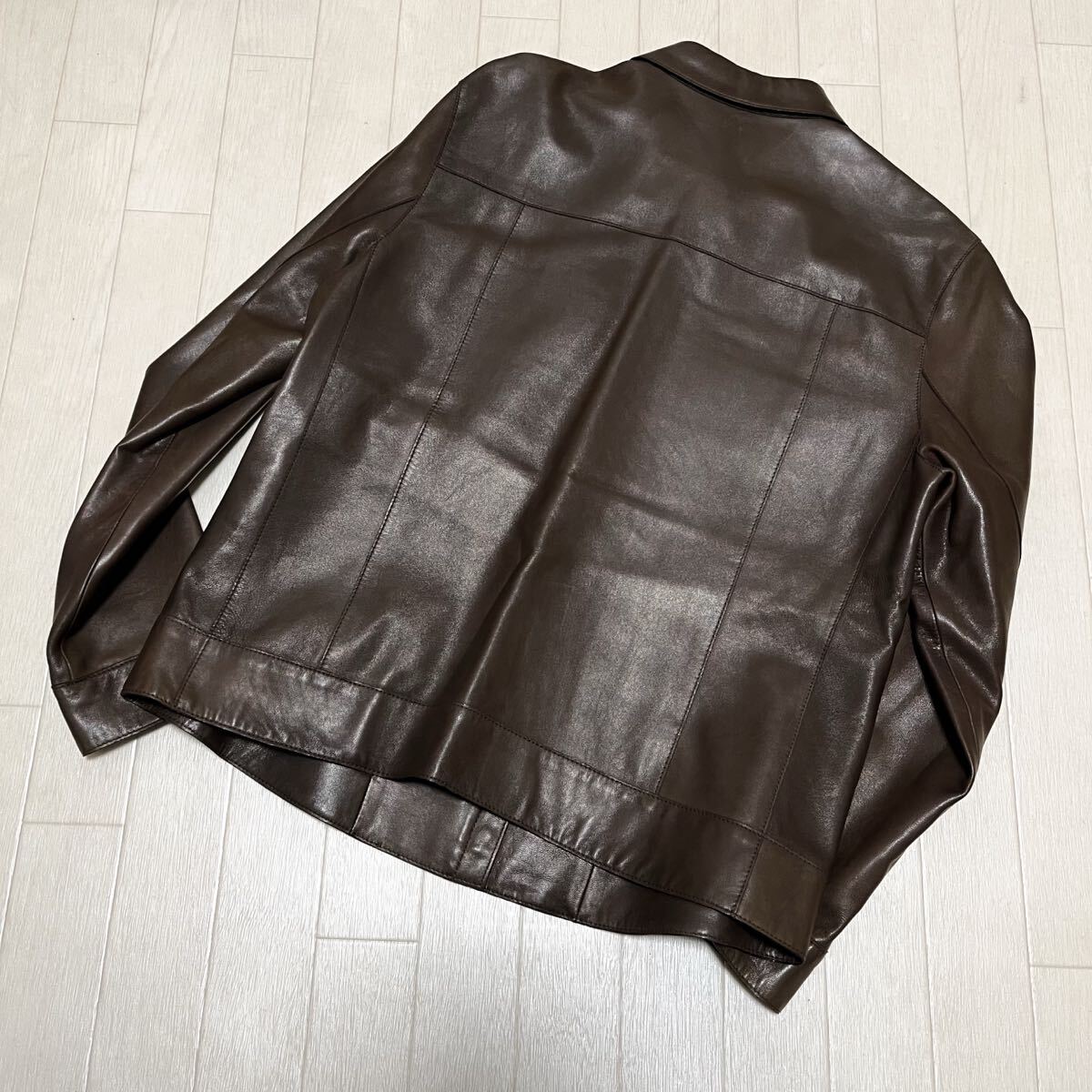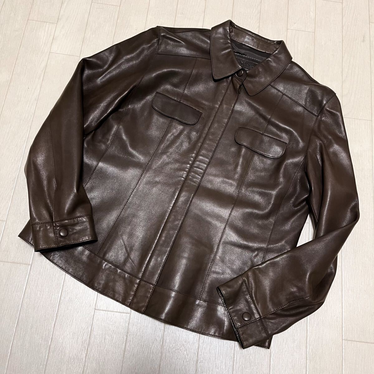 K10★ Leilian レリアン レザージャケット シャツジャケット 比翼ジップアップ 羊革 ラムレザー 9 ブラウン レディース