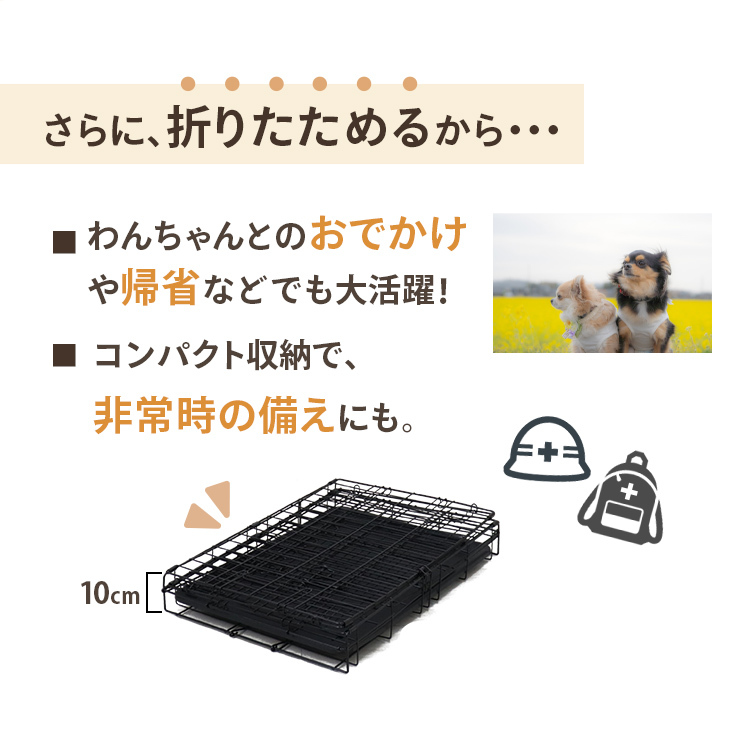 日頃からケージを自宅で使用し、ワンちゃんも使い慣れることで、お出かけ先でも安心して休むことができ、ストレスの軽減にもつながります。