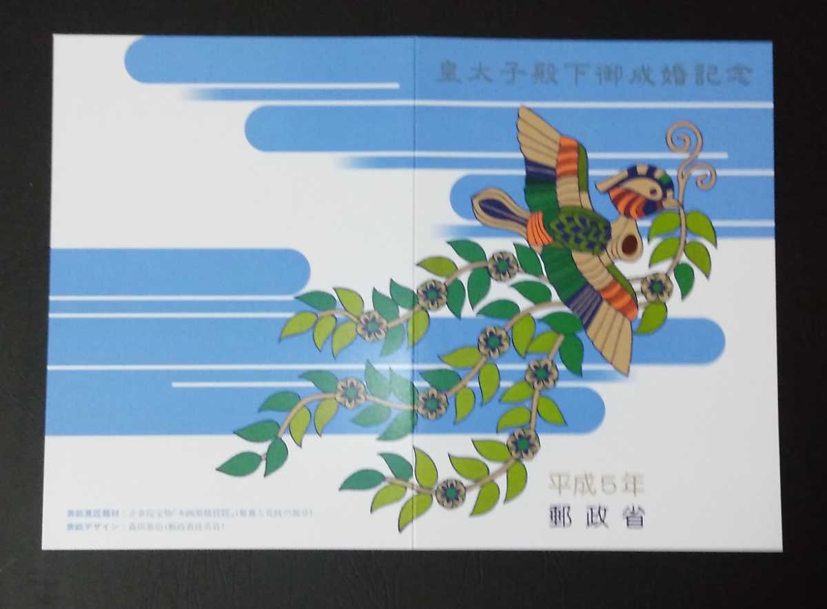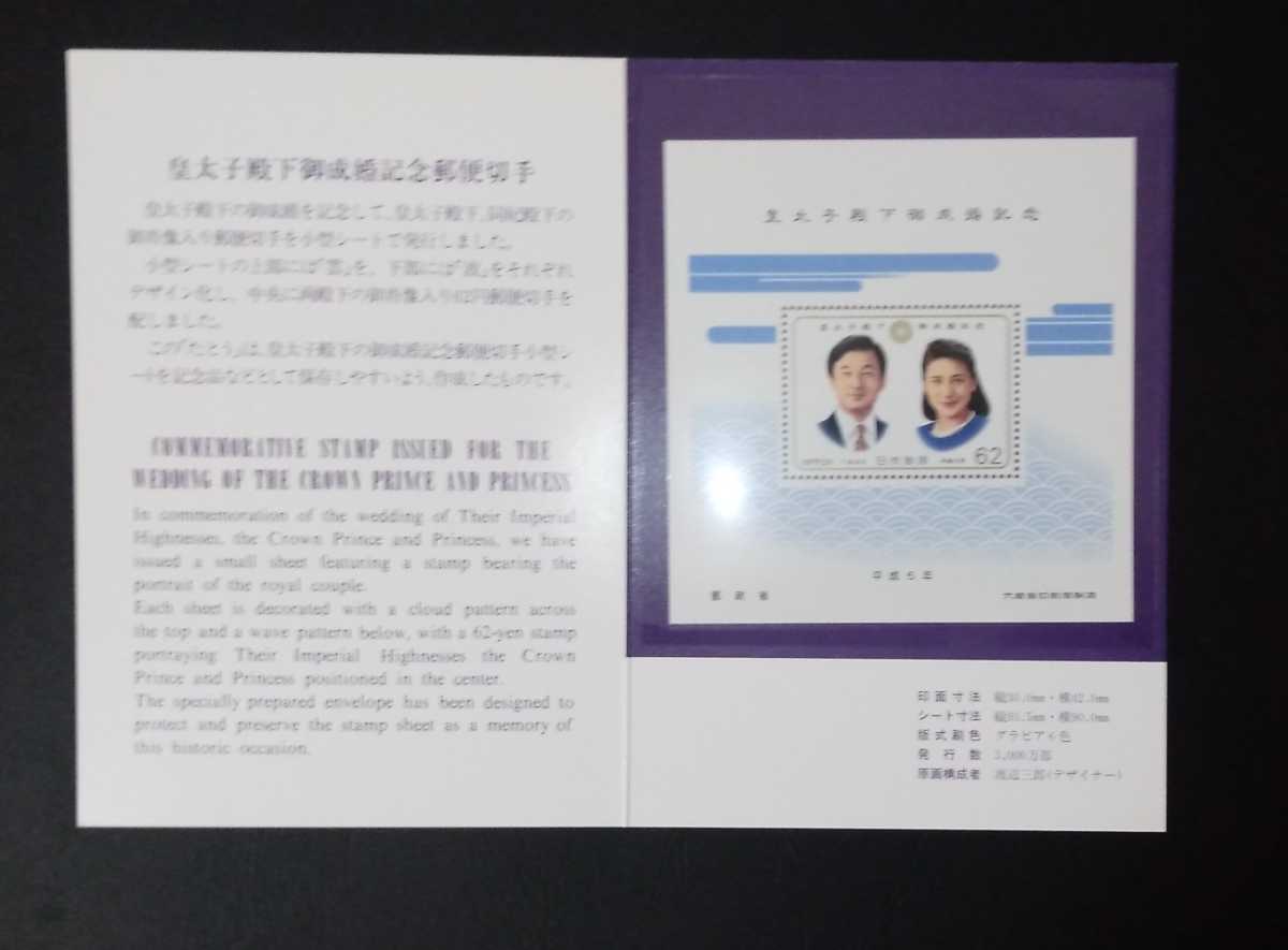 1993年・記念切手-皇太子(徳仁)成婚・小型シート(タトウ付)