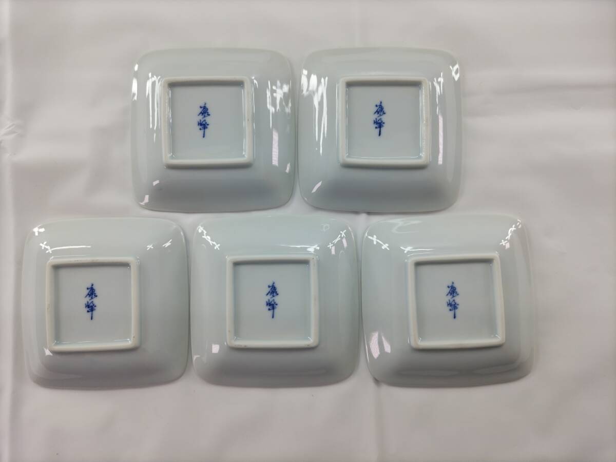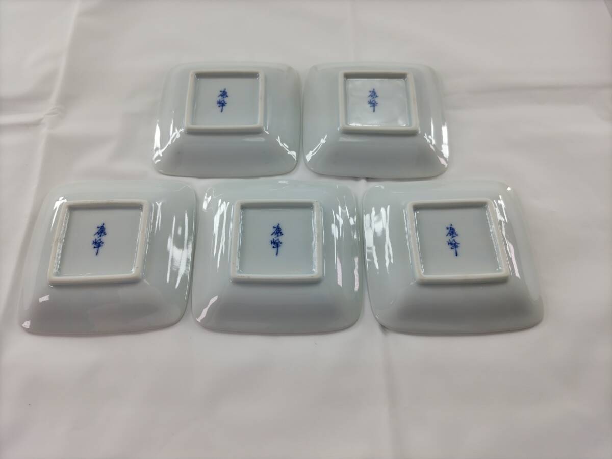眞龜【美しい食器】康峰窯 豆皿 5枚セット 小皿 醤油皿 銘々皿 和風 レトロ 日本 陶器 焼物 皿 節句 縁起物 行事 緑 和皿 皿 青 古き良き