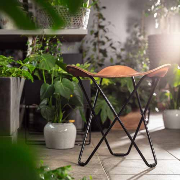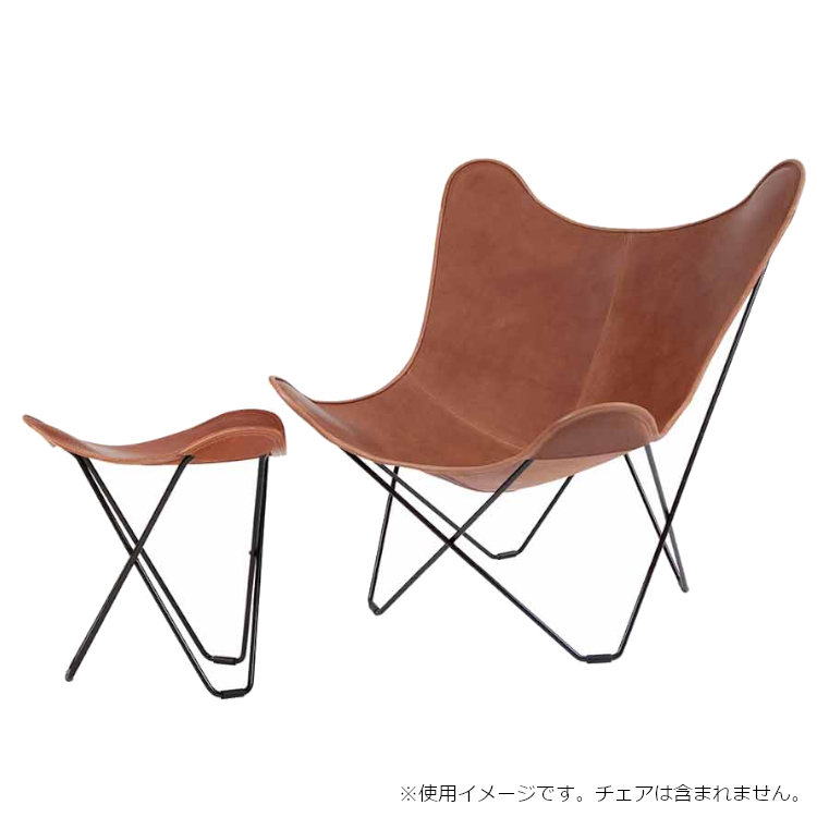 バタフライチェアの愛称で知られるBKFチェア。人気のこのチェアはアルゼンチン人デザイナー3人によってデザインされ、それぞれの頭文字をとってBKFチェアと名づけられました。軽やかに組まれたスチールフレームに、厚く上質な本革の本体を掛け、シンプルな構造かつデザイン性の高いスツールです。単体でも、チェアと組み合わせてもお使いいただけます。
