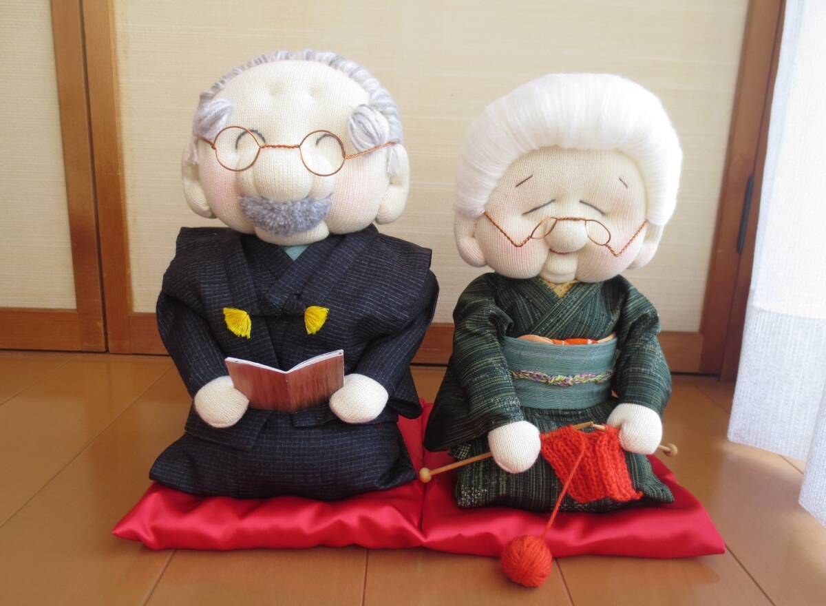 おじいさんおばあさん人形 夫婦人形 手作り人形 ハンドメイド 金婚式 銀婚式 お祝い 敬老の日 ギフト