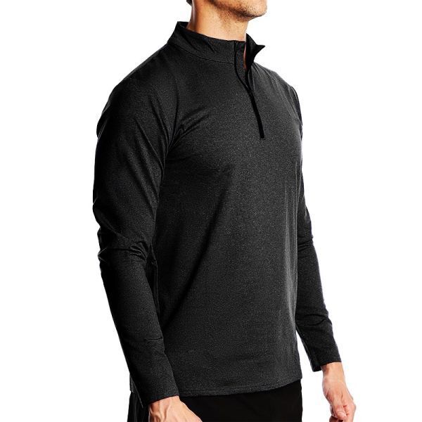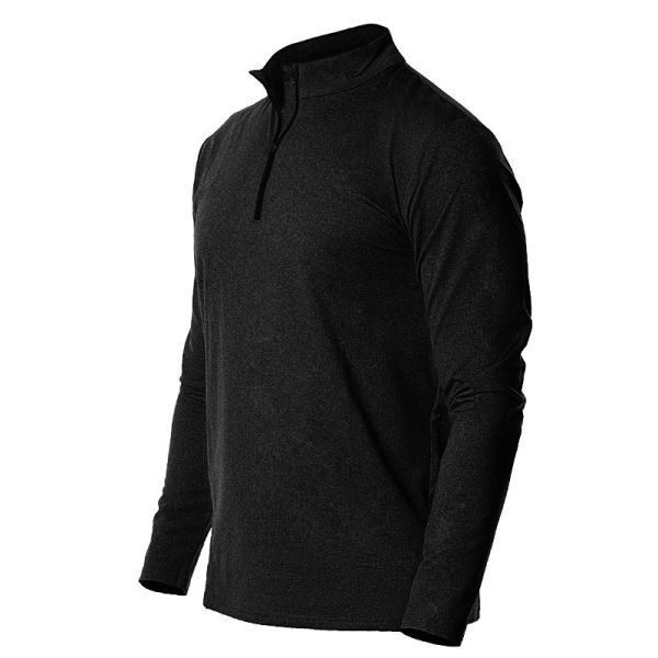 t16【 L 黒 】ハーフジップ シャツ 長袖 メンズ ウェア 速乾 カッター プルオーバー スポーツ トレーニング ゴルフウェア ゴルフ 1