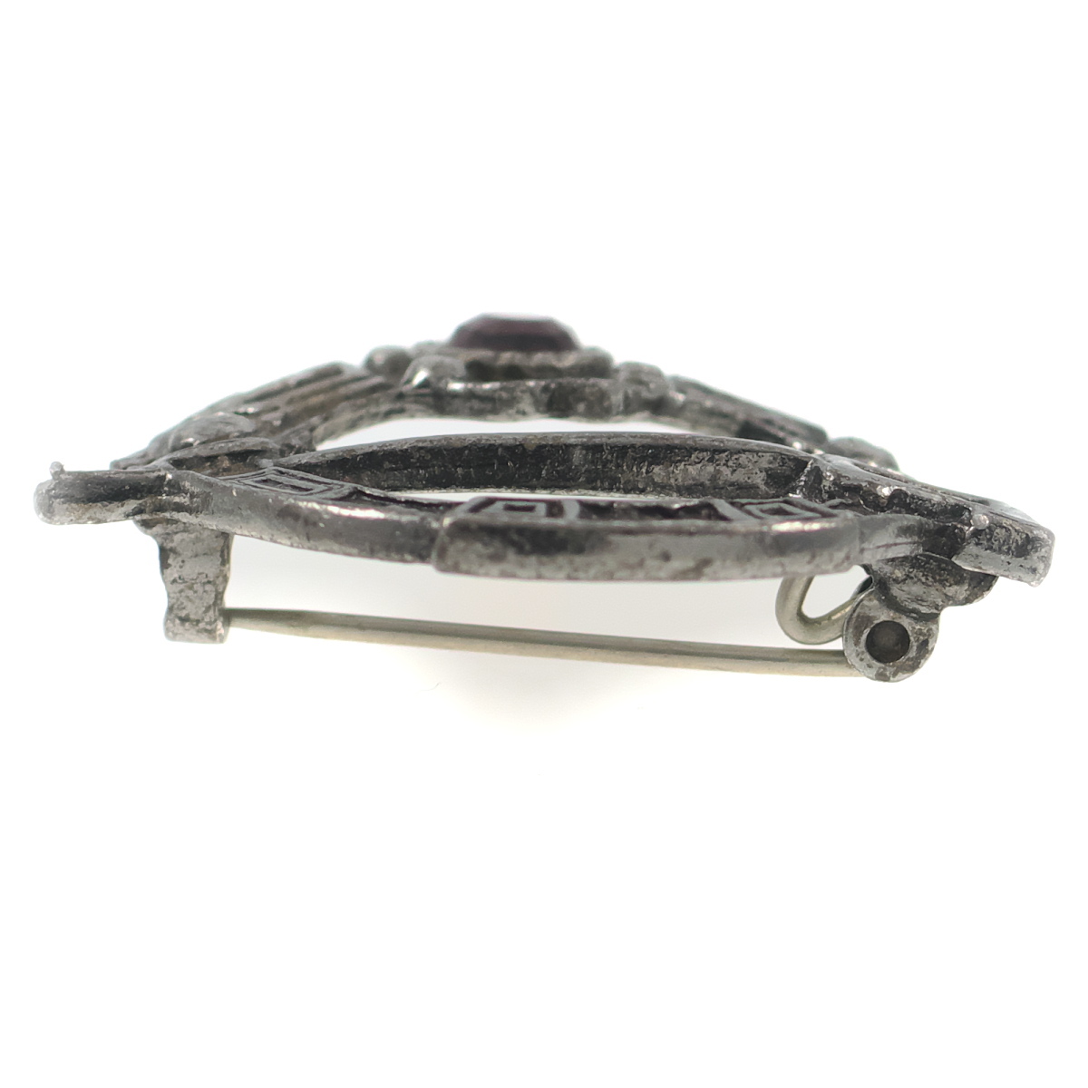 UK3117◆ ソード&シールドモチーフ 剣 盾 パープル系ストーン 色石 ケルト イギリス 英国 ◆ ヴィンテージブローチ ◆