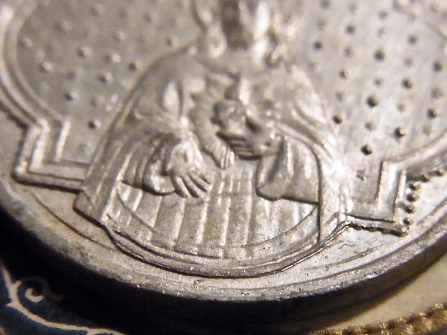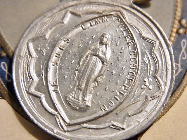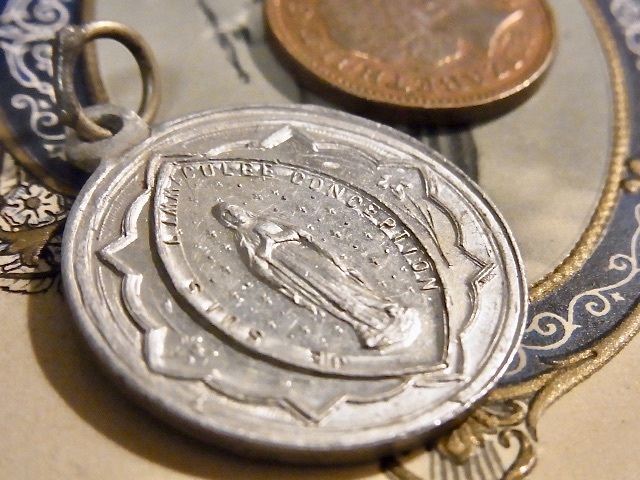 フランス アンティーク 聖母マリア イエズスの聖心 メダイ アルミ 大聖堂 無原罪の御宿り 悲しみのマリア