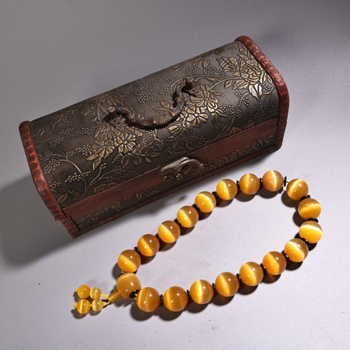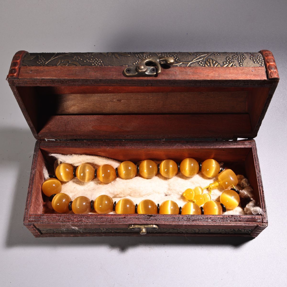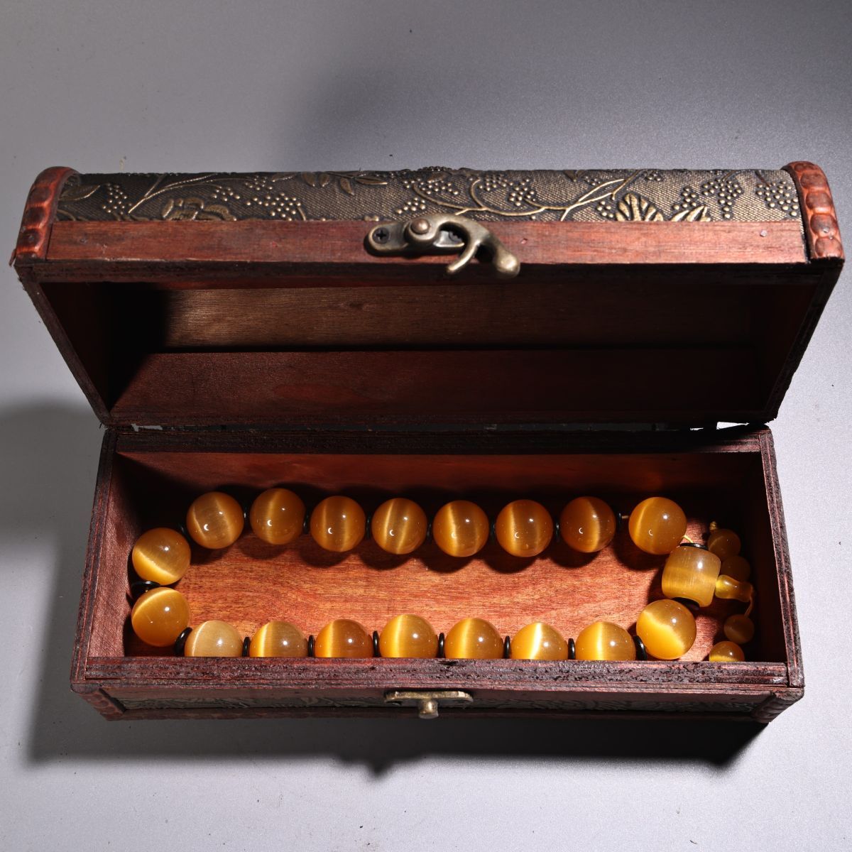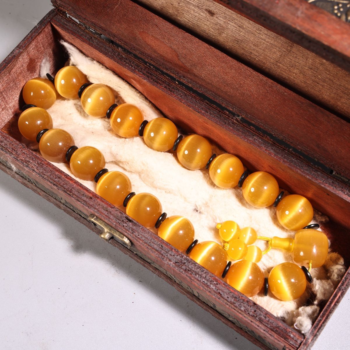 永し 清時代 黄猫眼石 十八子手持佛珠 木盒 極細工 置物擺件 古美術品 時代物 古董品 収集 旧家蔵出 中国唐物 A248
