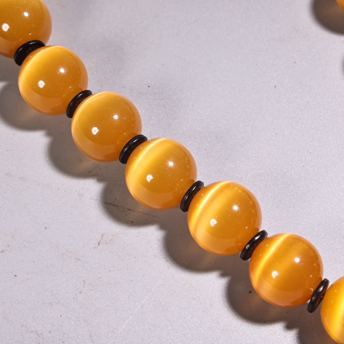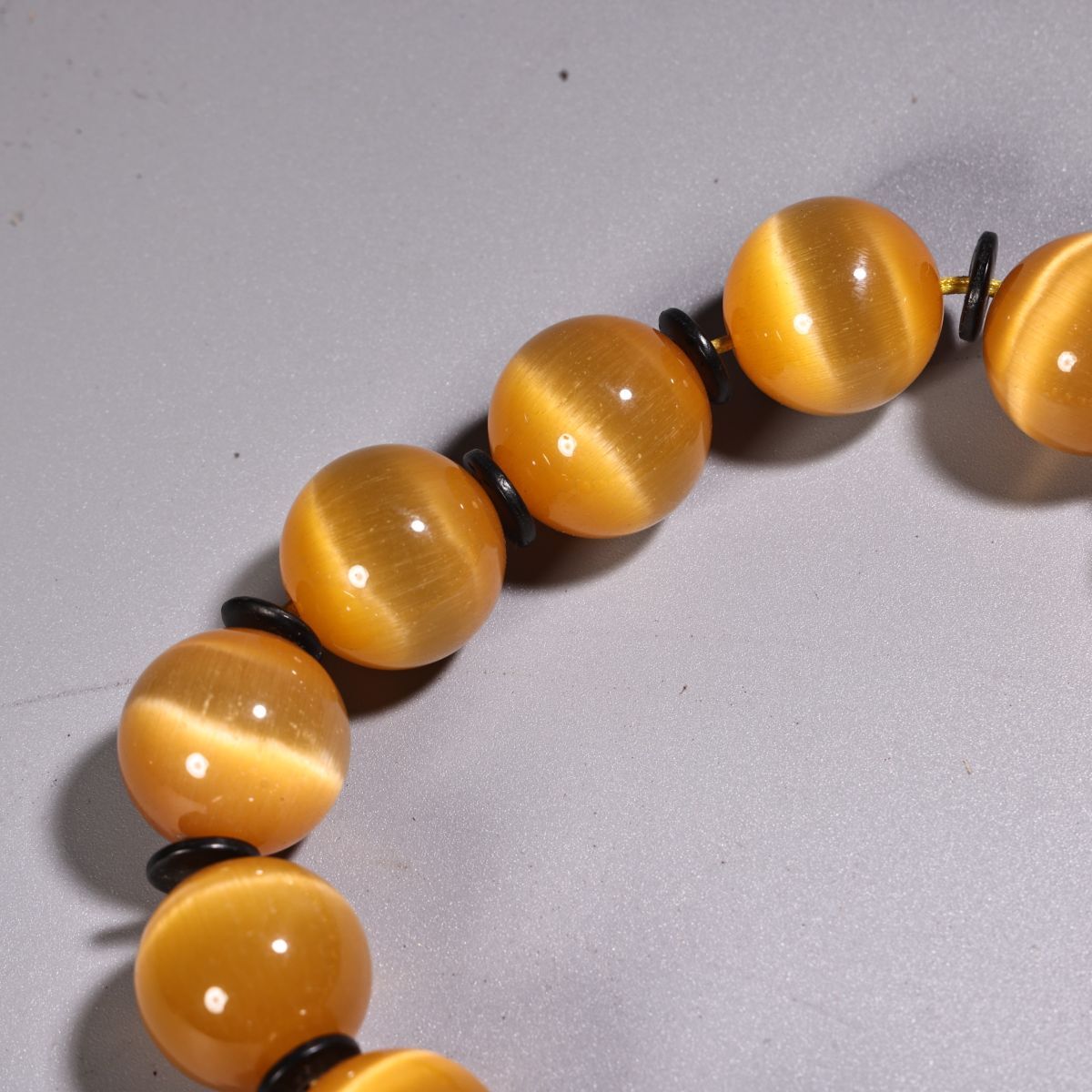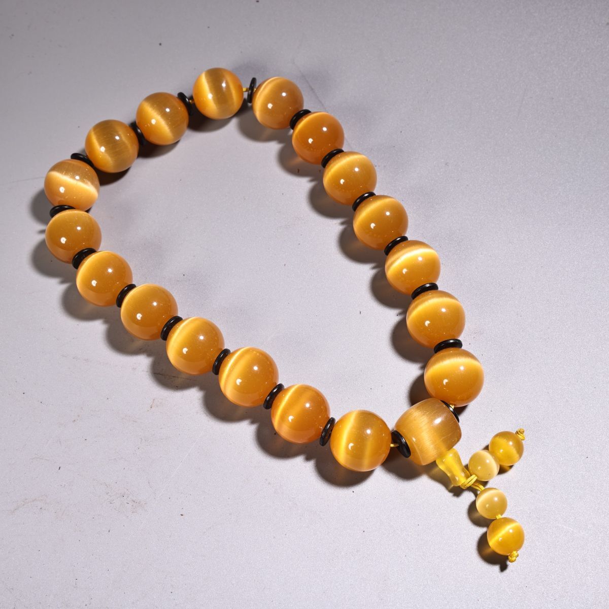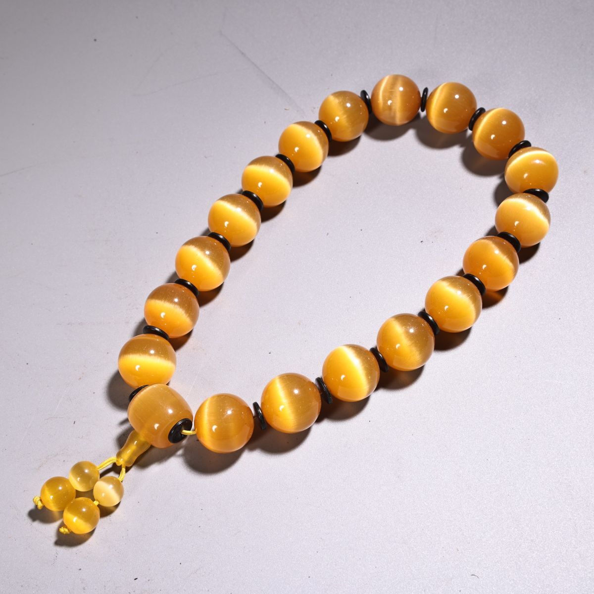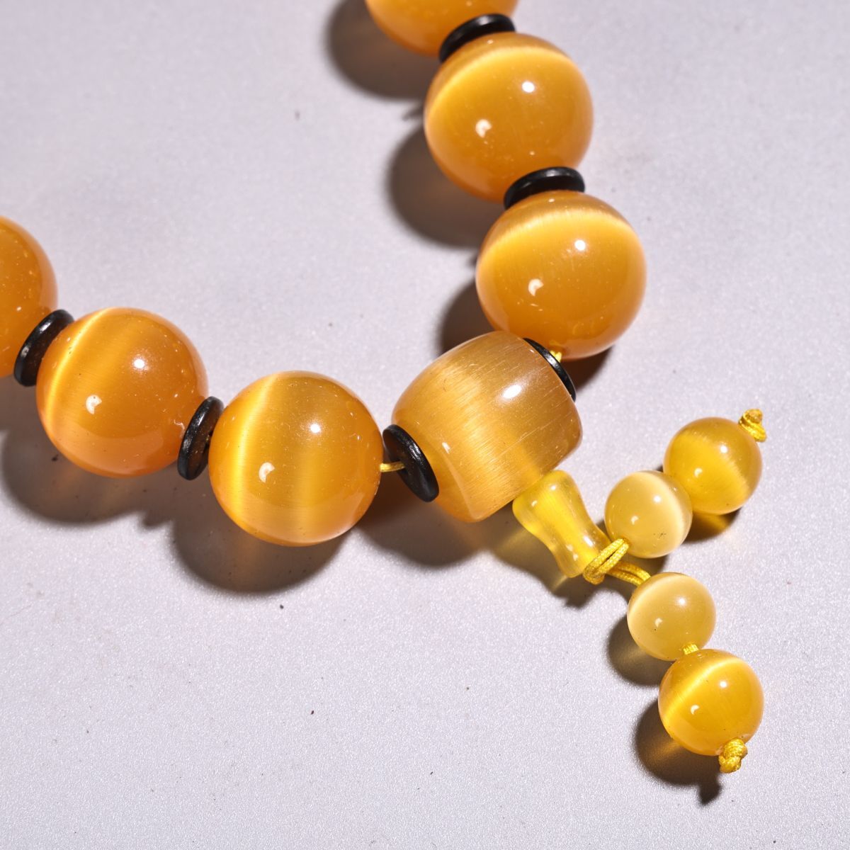 永し 清時代 黄猫眼石 十八子手持佛珠 木盒 極細工 置物擺件 古美術品 時代物 古董品 収集 旧家蔵出 中国唐物 A248