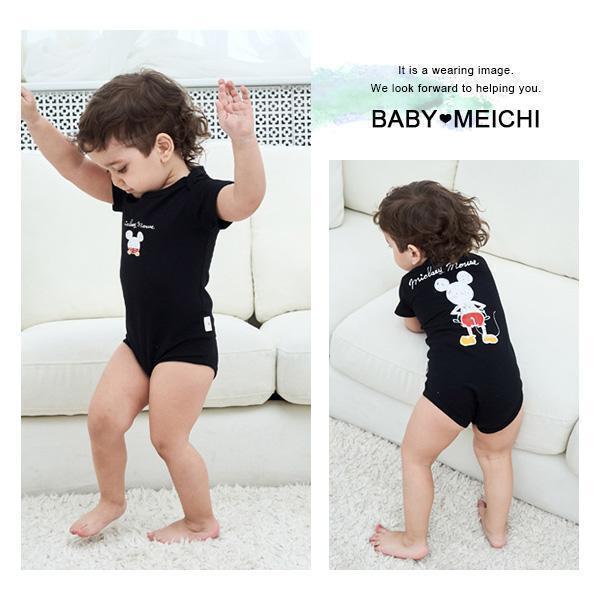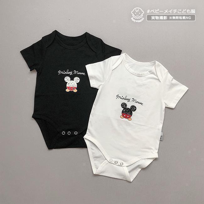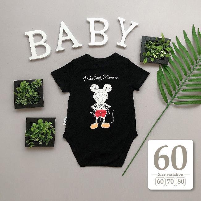 新品未使用 60cm ブラック〔#BMミッキーロンパース〕ディズニー 半袖 Tシャツ ペア 親子コーデ 男の子 女の子 ベビー キッズ 子供 パジャマ