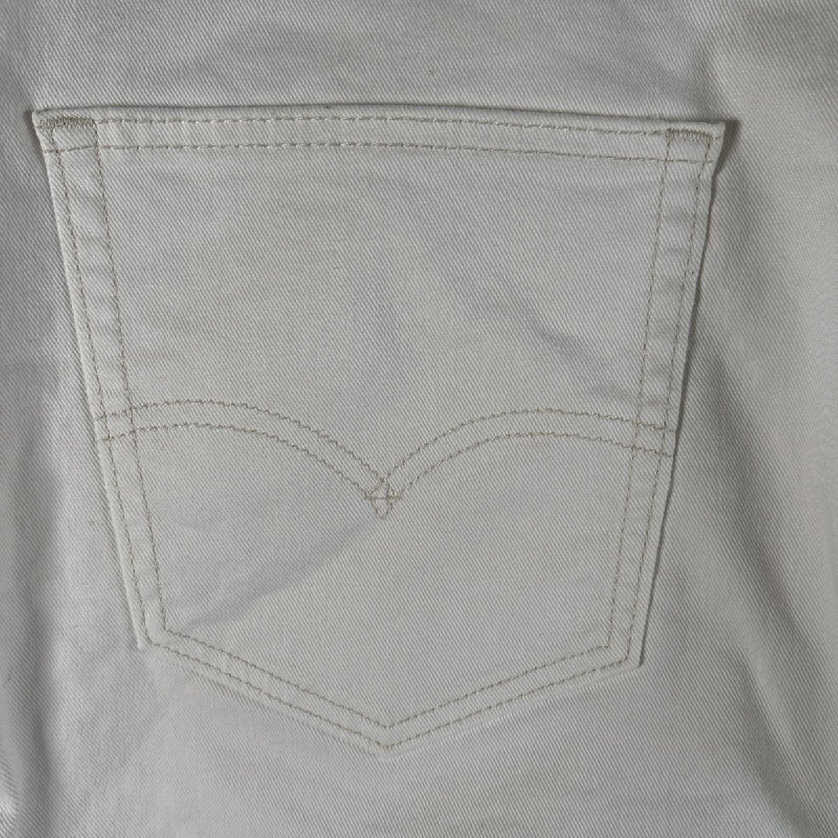外側 | 表面:シワ、色褪せ 前面右太ももに汚れ |