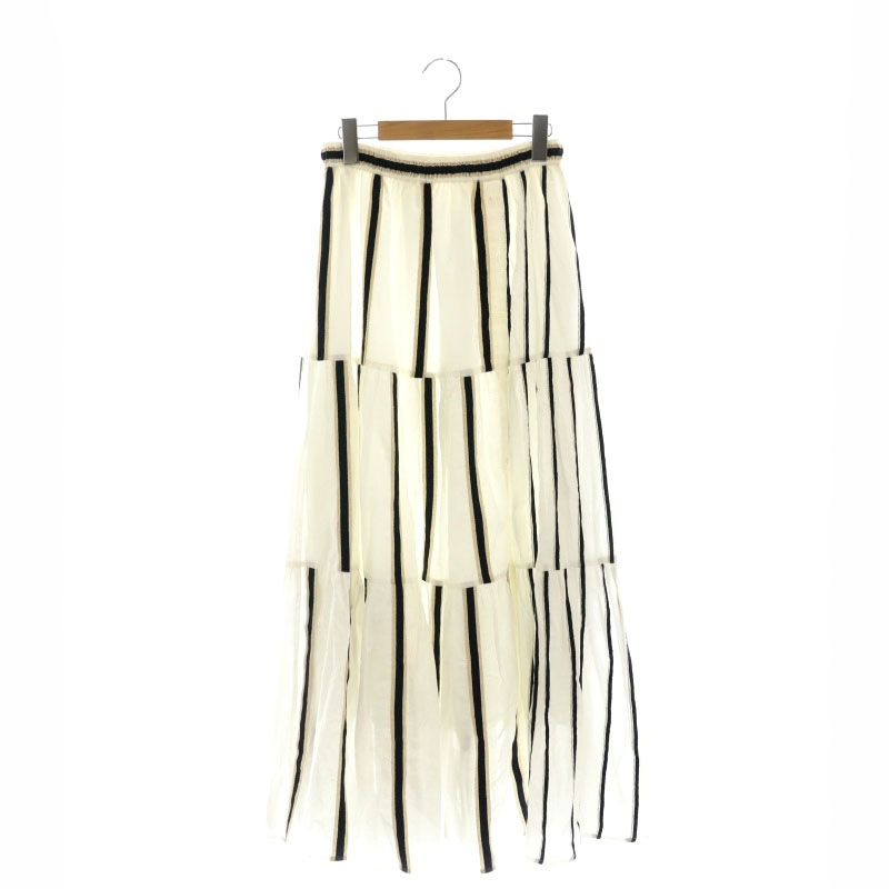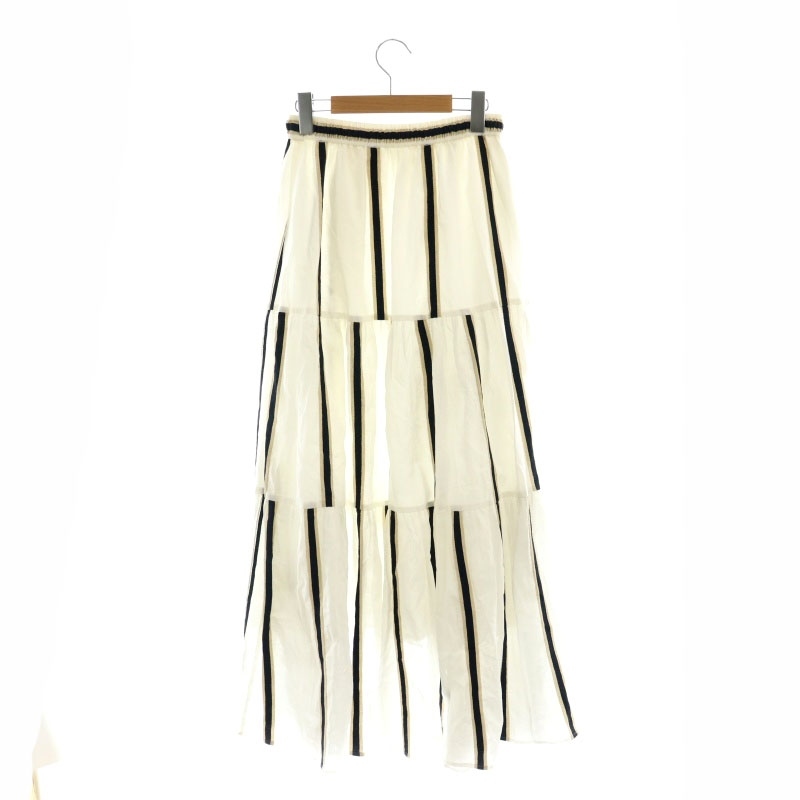 ダイアグラム グレースコンチネンタル ストライプティアードスカート ロング丈 マキシ丈 フレア コットン 36 S 白