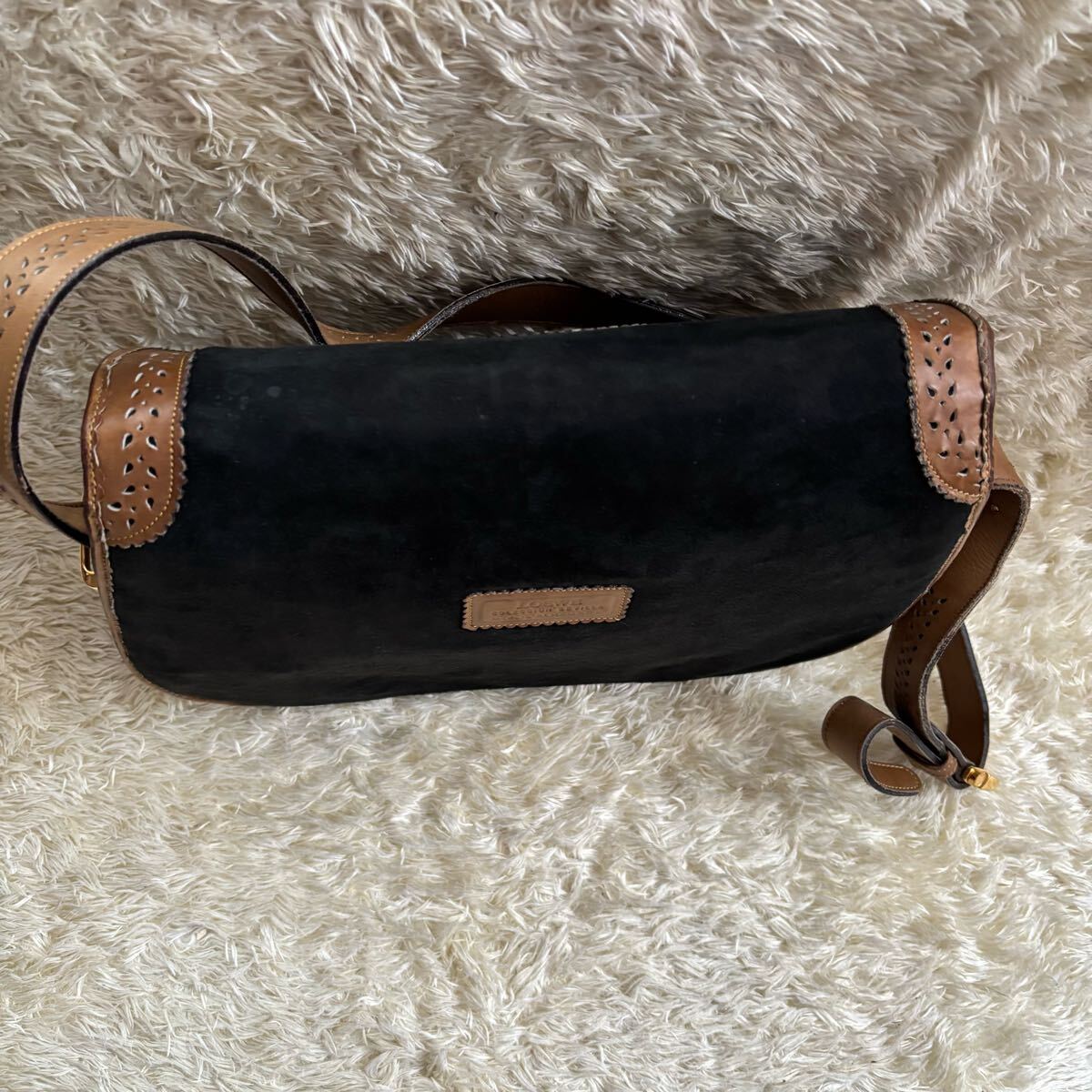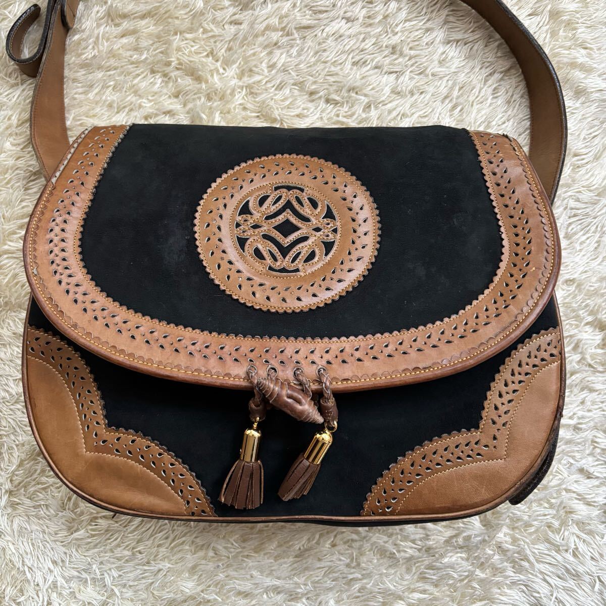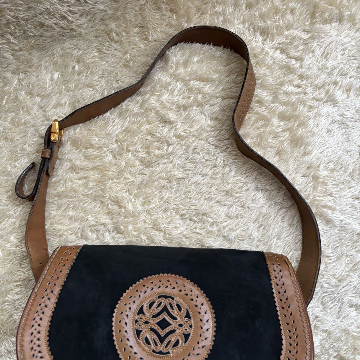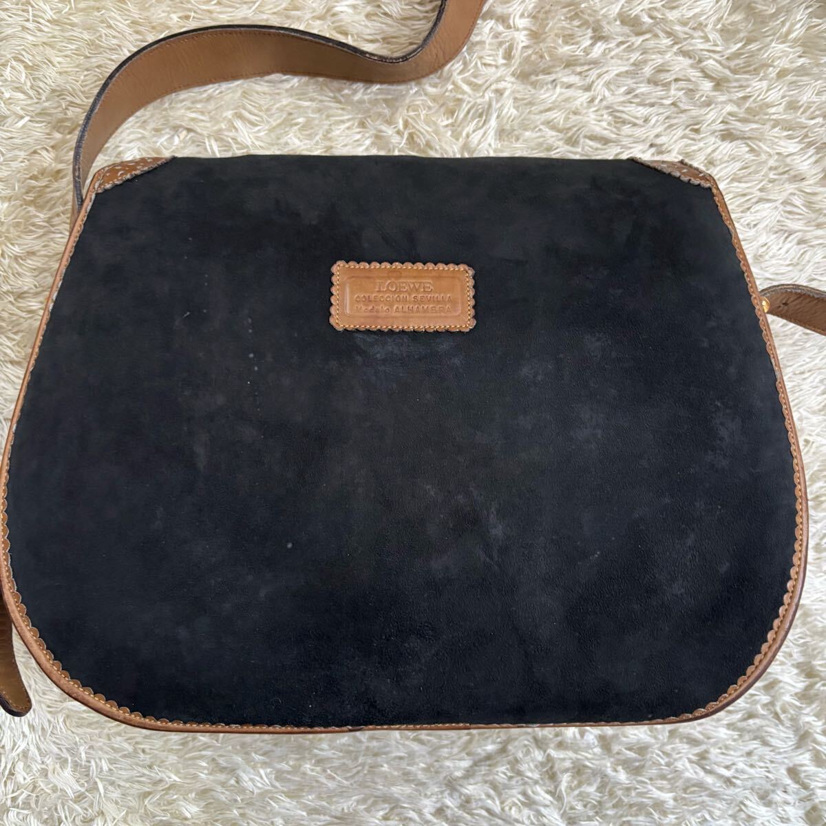LOEWE ロエベ セビリアコレクション ショルダーバッグ クロスボディ ポーチ アナグラム スエード レザー ブラック 黒 ゴールド