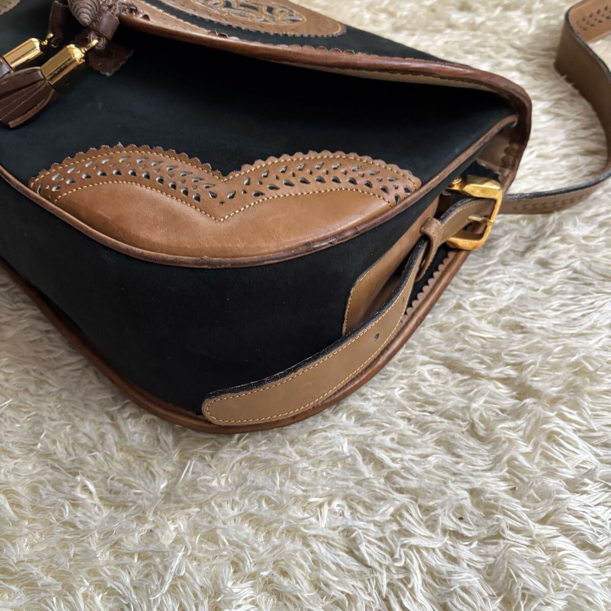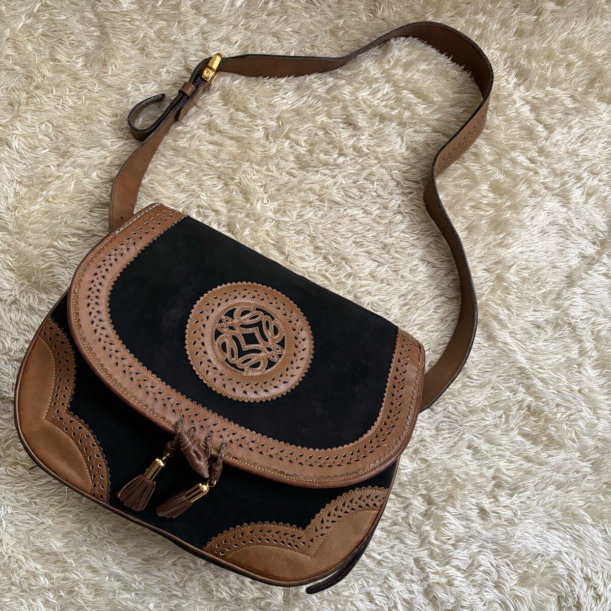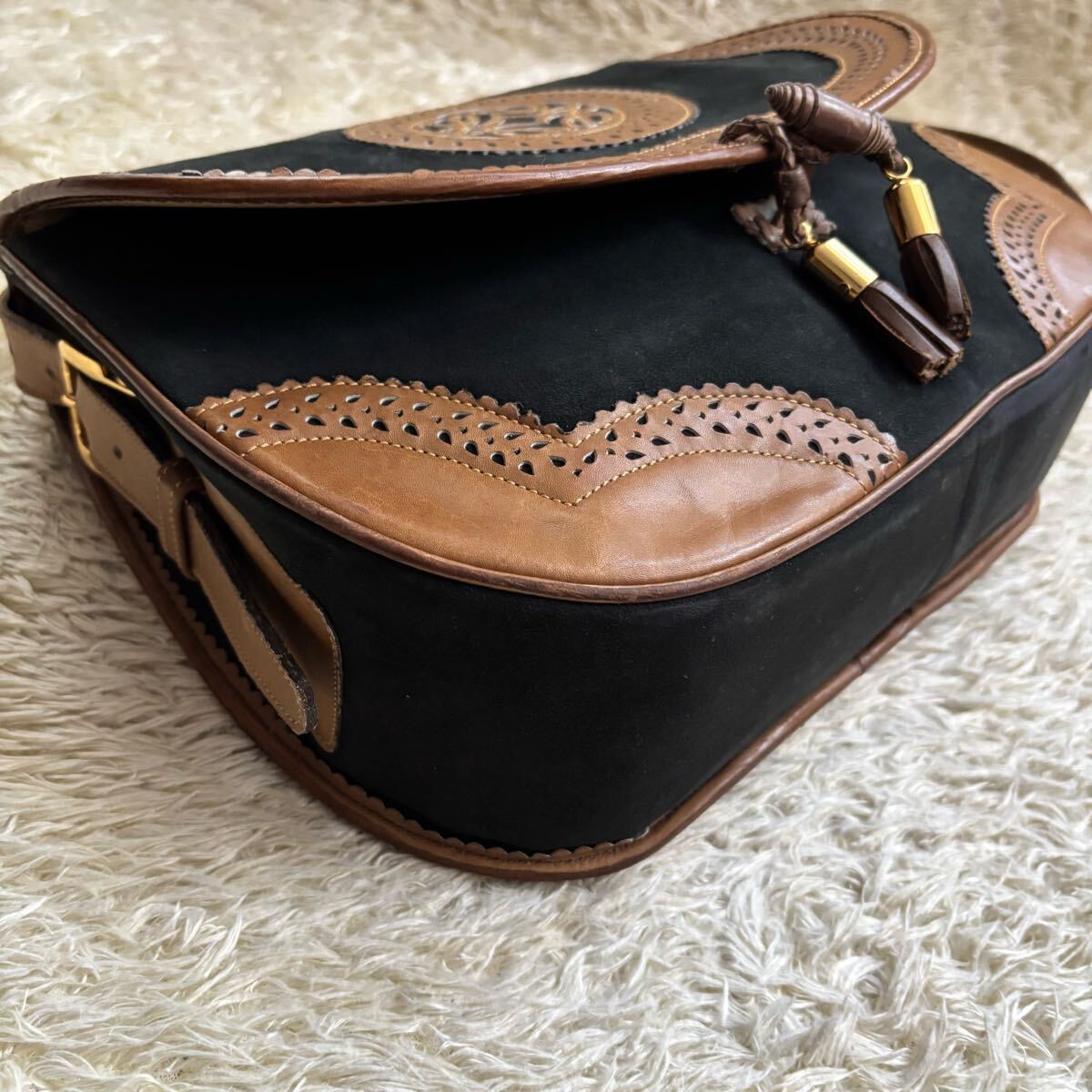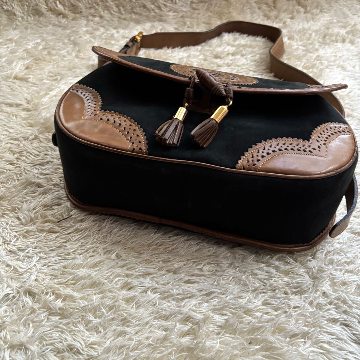 LOEWE ロエベ セビリアコレクション ショルダーバッグ クロスボディ ポーチ アナグラム スエード レザー ブラック 黒 ゴールド