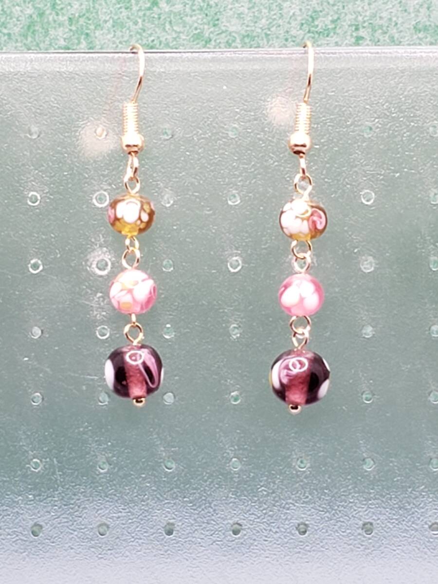 ★ハンドメイド イヤリングorピアス D328 樹脂フック・クリップ式イヤリング金具など変更無料 ランプワークガラス★